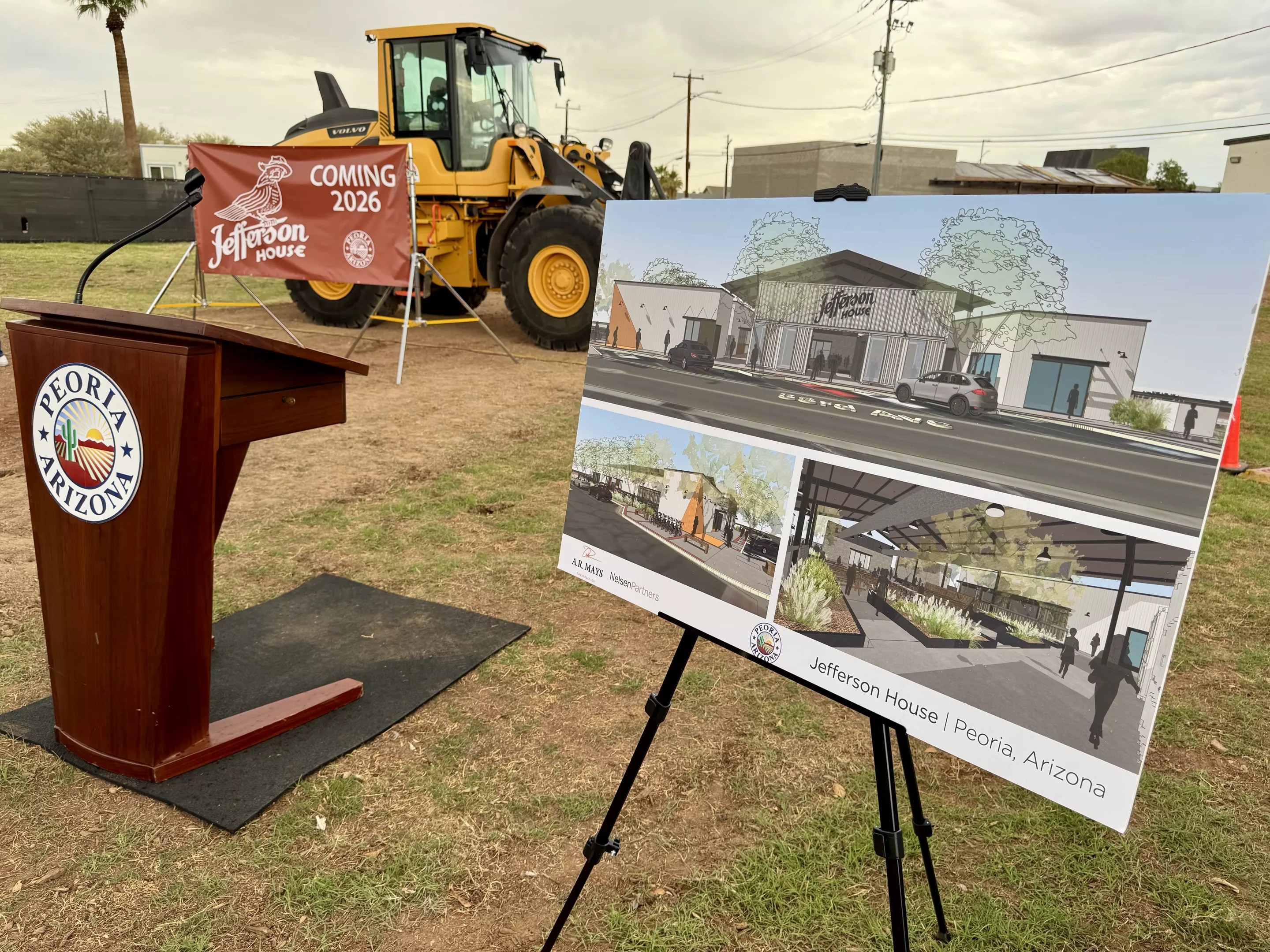 A long-anticipated West Valley food and shopping hub is finally moving forward. Dozens gathered in an empty lot on the northwest corner of 83rd Avenue and Jefferson Street on a muggy Thursday morning, sipping coffee from neighboring cafe Driftwood Coffee Co. and savoring doughnuts from Novel Ice Cream.