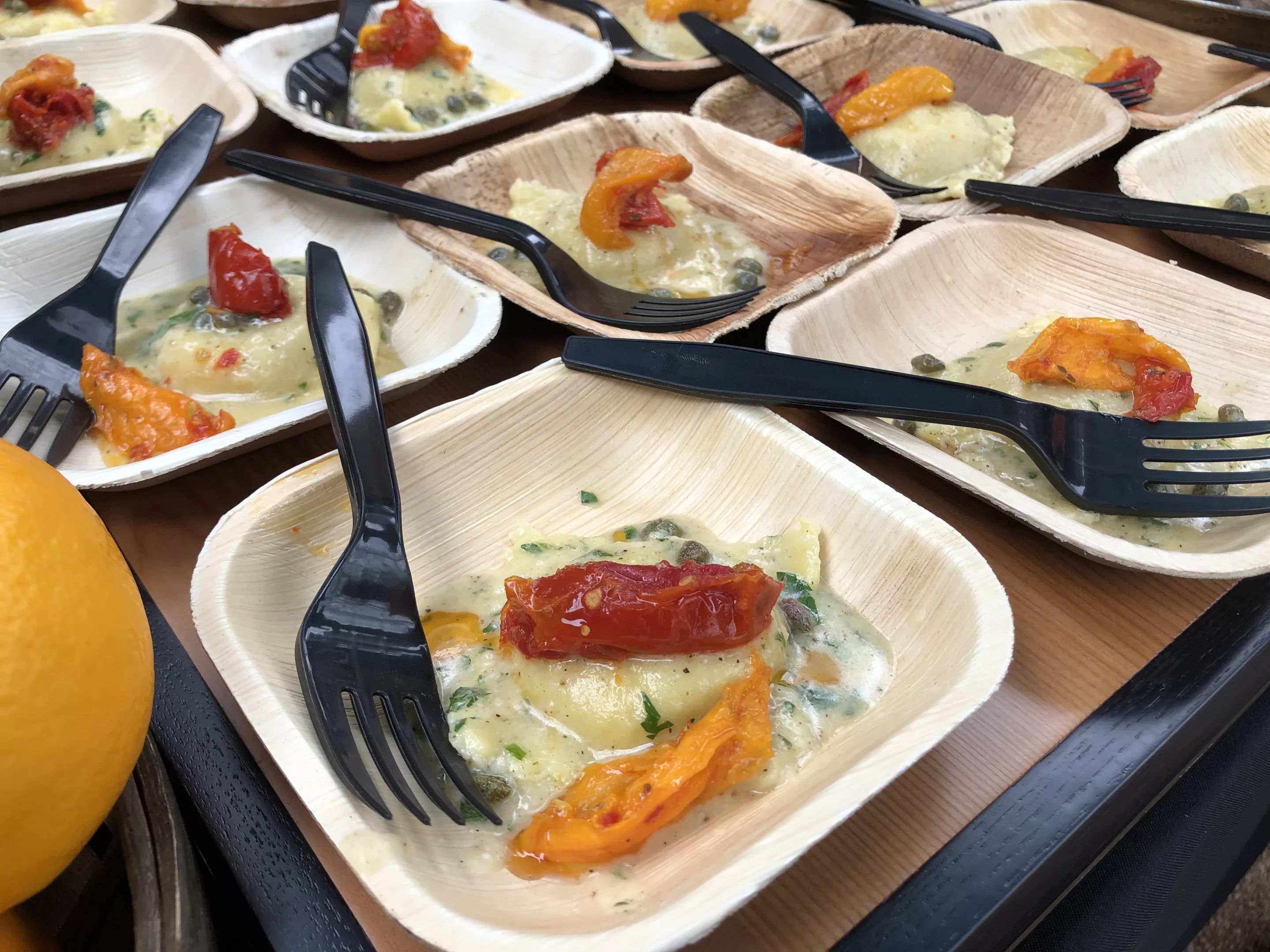 On a day where too many stands made food needlessly complex, Joyride Taco House mashed the pedal nice and hard without overdoing things. The grits? Piping hot and nicely cooked, suffused with the rugged soul of poblanos. The barbacoa? Falling apart and jammed with flavor, the meat on a separate and complementary plane of softness relative to the grits below. Though it was hard to finish the paleta given its size, frozenness, and the calling of the many stands to come, licks brought a clean fruitiness and were a nice break and flavor eraser after heady spoonfuls of melting corn and lamb. A classic Italian dish finds a new home inside ravioli. Chris Malloy