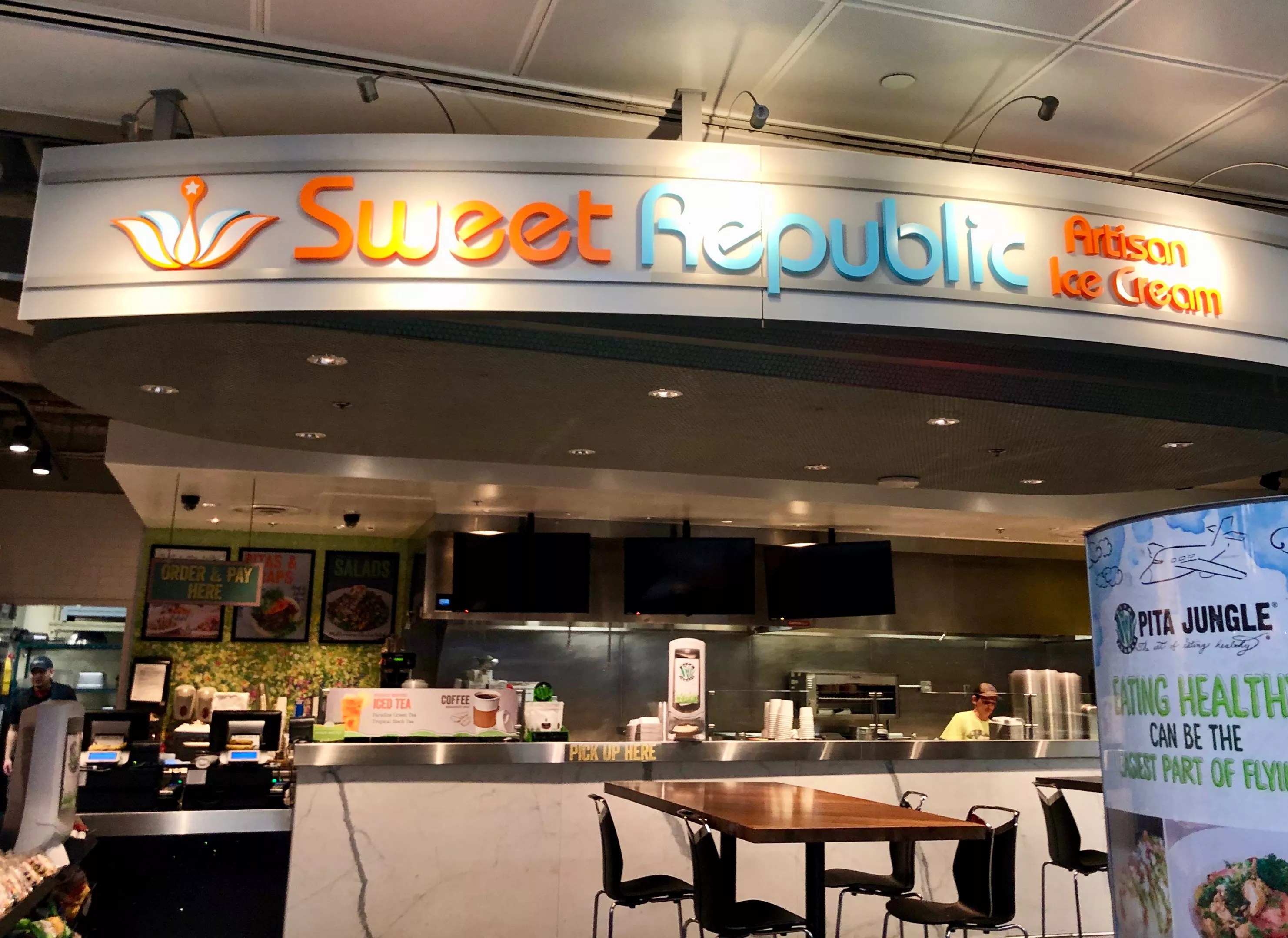 So for dessert, hop on the closest moving walkway to Sweet Republic for handcrafted ice cream at B5, and Tammie Coe Cakes at A25. And if you’re just looking for something sweet to enjoy on the plane, Cactus Candy is just about everywhere.