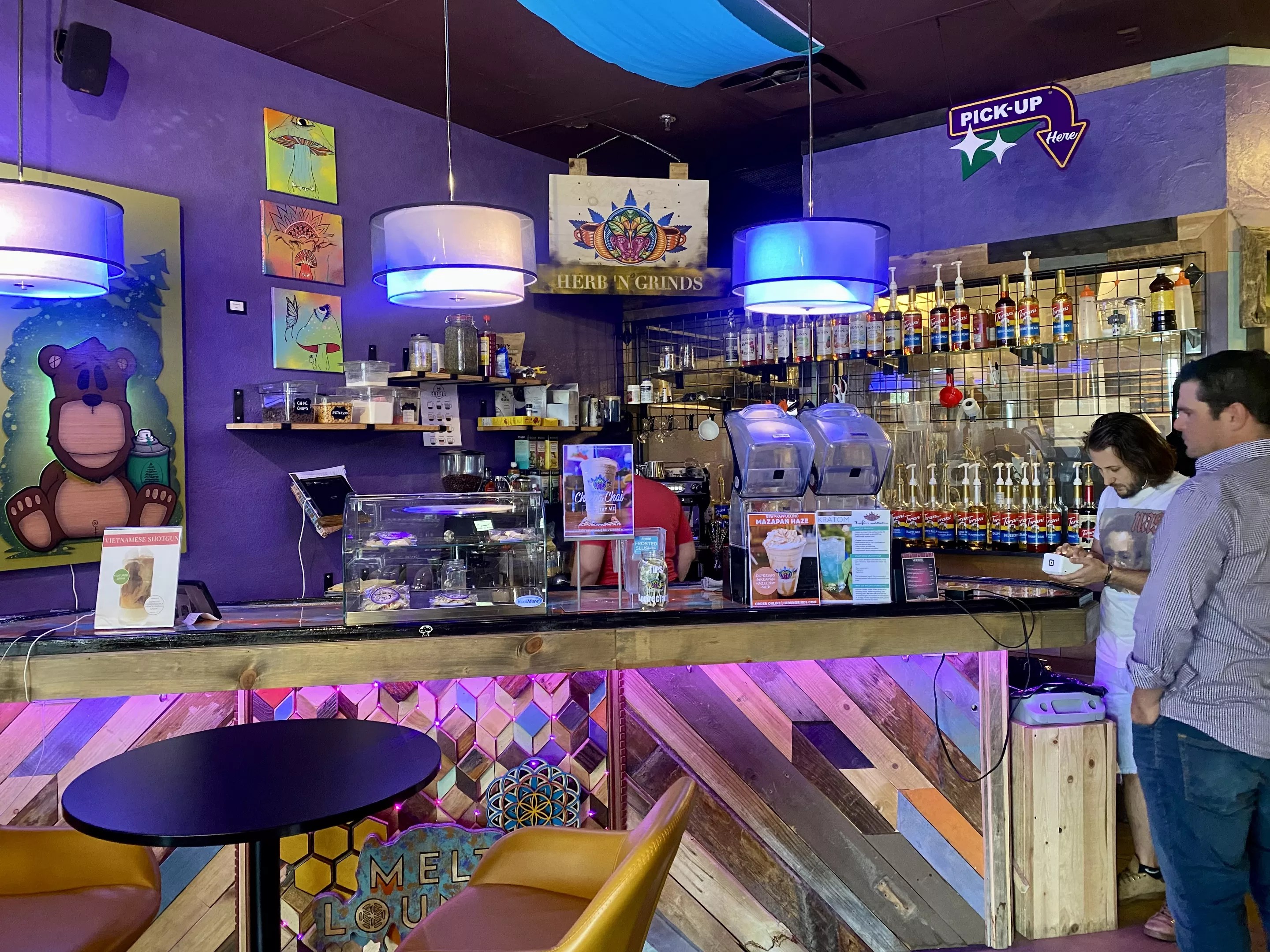 480-395-7058 Herb N’ Grinds is an all-around interesting place. It’s part coffee, kava, and kratom shop, part electronic dance music hangout, and part glassblowing studio. The lounge, which has been open for about a month, used to be an event space hosting live DJs, but now people can hang out all day, coffee in-hand. Herb N’ Grinds also serves kava, a calming beverage utilized for ceremonies in the South Pacific, and kratom, an energizing herbal extract derived from the leaves of an evergreen tree grown in Southeast Asia.