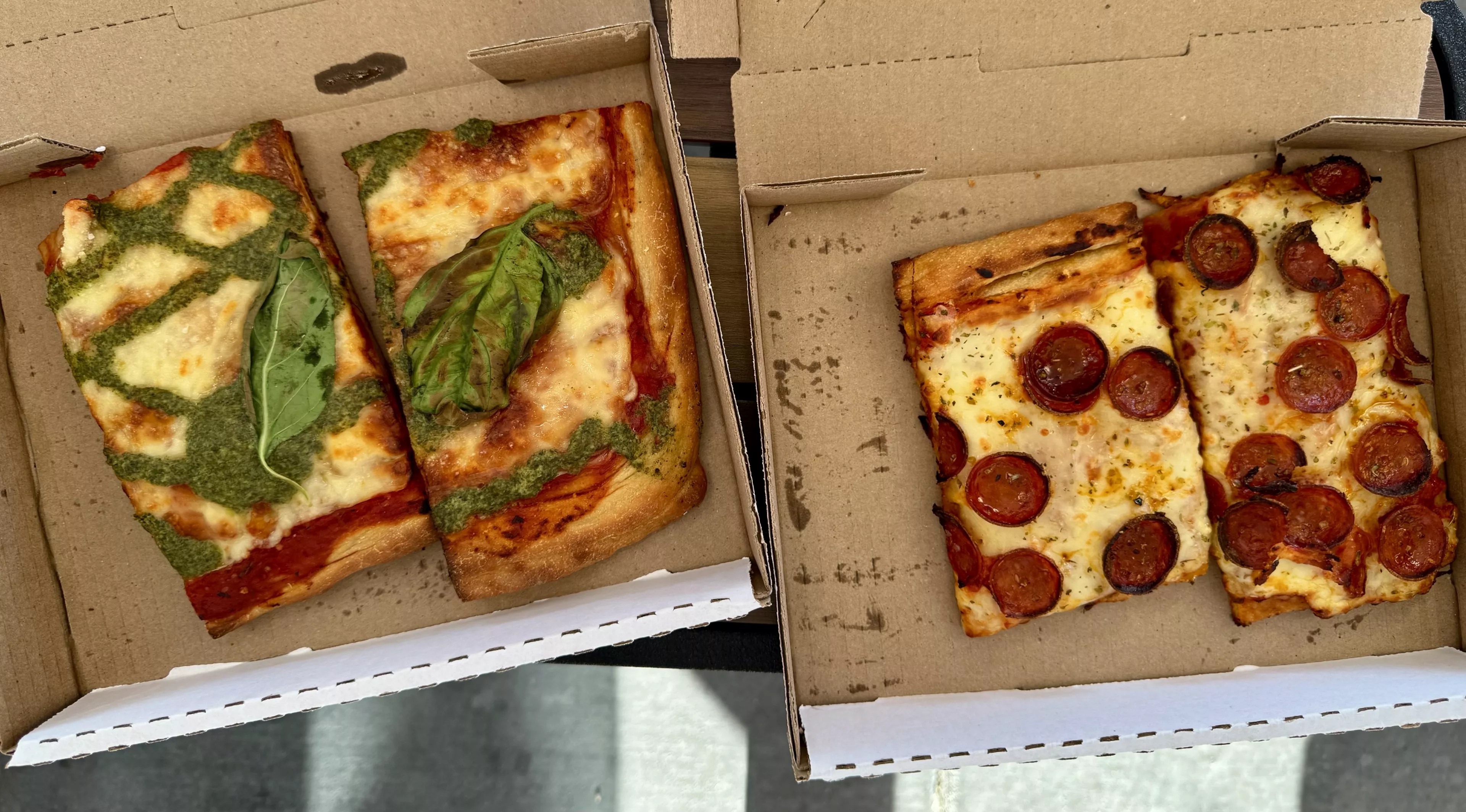 On the lunch and dinner menu, customers can select between multiple classic and creative slices of pizza.