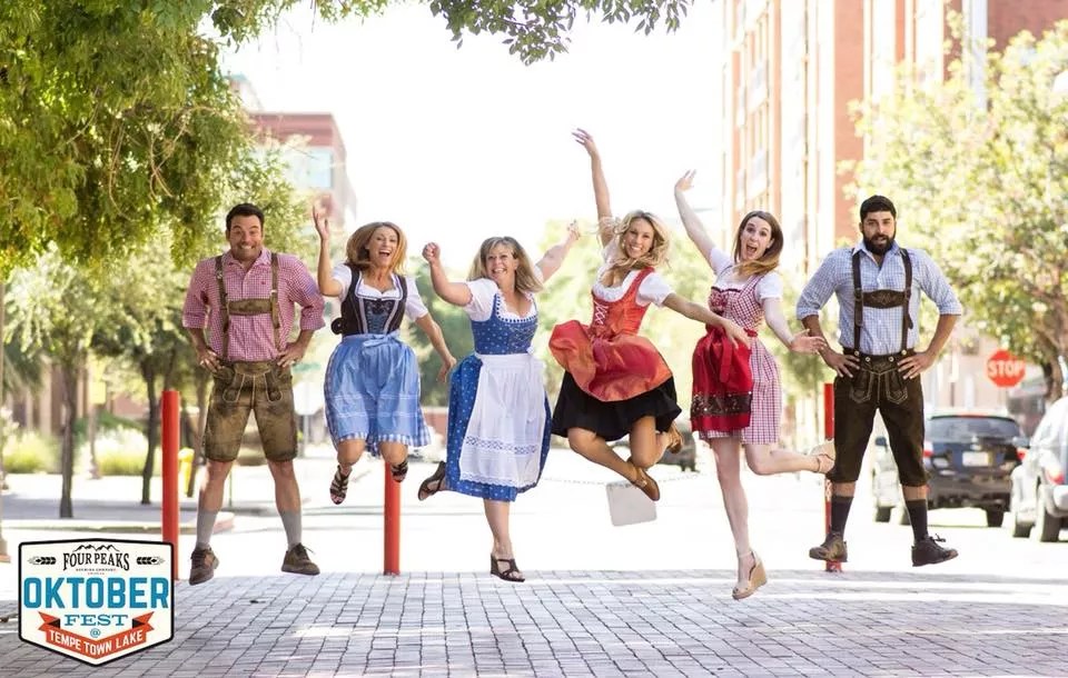 Jumping for joy for the 49th Four Peaks Oktoberfest at Tempe Town Lake.