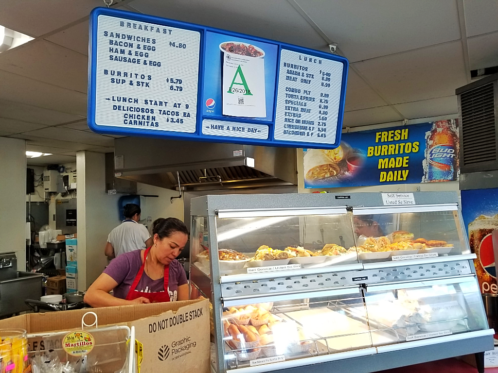 The restaurant, which also sells breakfast sandwiches, tacos, tortas, and snack foods, doesn’t have an official name. One of the women working behind the counter tells me this in Spanish.