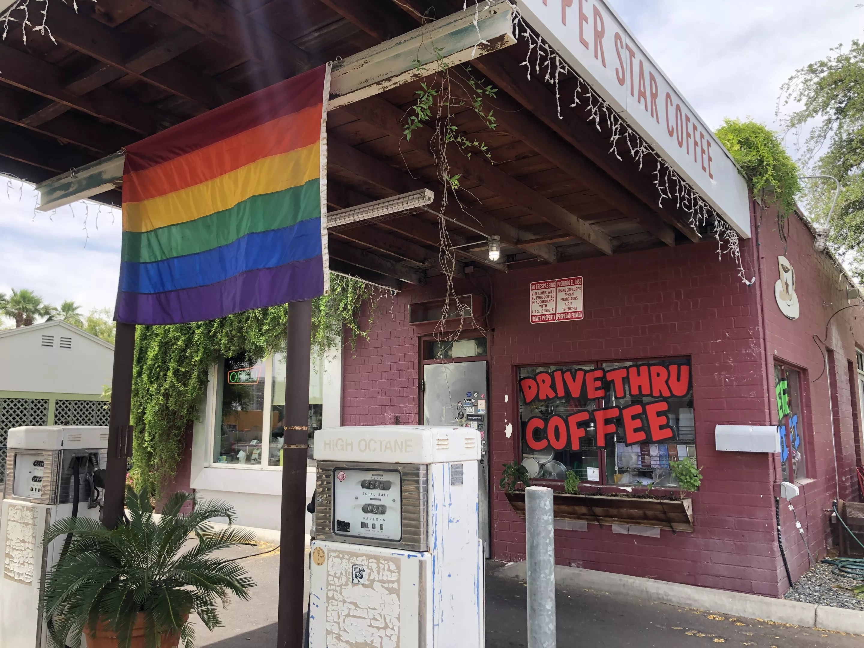 Make it a nifty ’50s afternoon with a treat from Copper Star – the Melrose District coffee shop housed in an old gas station where instead of full-service fueling, you’ll receive full-service food (and fuel in the form of coffee). Pull up to the window and your car will drive over a strip that rings a bell inside. One of the servers will bring you a menu of salads, sandwiches, pastries, and the highly recommended hummus. Orders here take usually about five to seven minutes depending on your order.