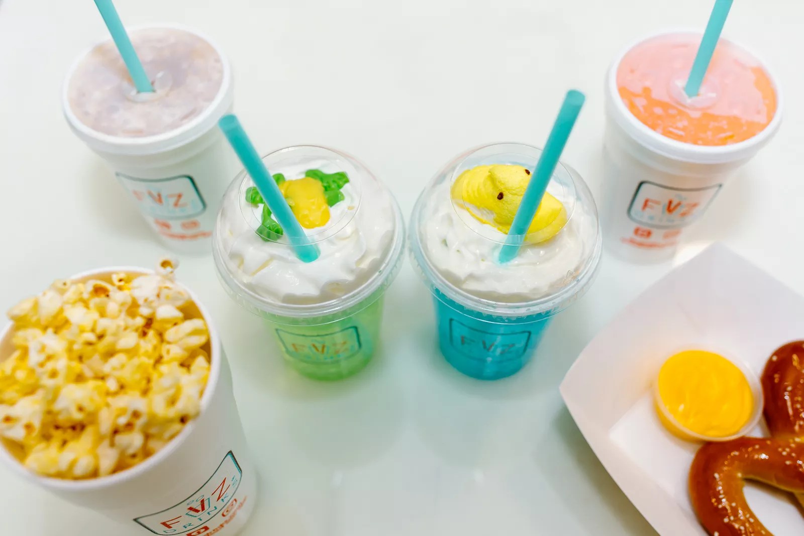 Now boasting a drive-thru and intimate indoor seating, the building is open and ready for business. In addition to the notable drink menu, they also serve light snacks including popcorn, nachos, and soft pretzels for the perfect salty and sweet pairings.
