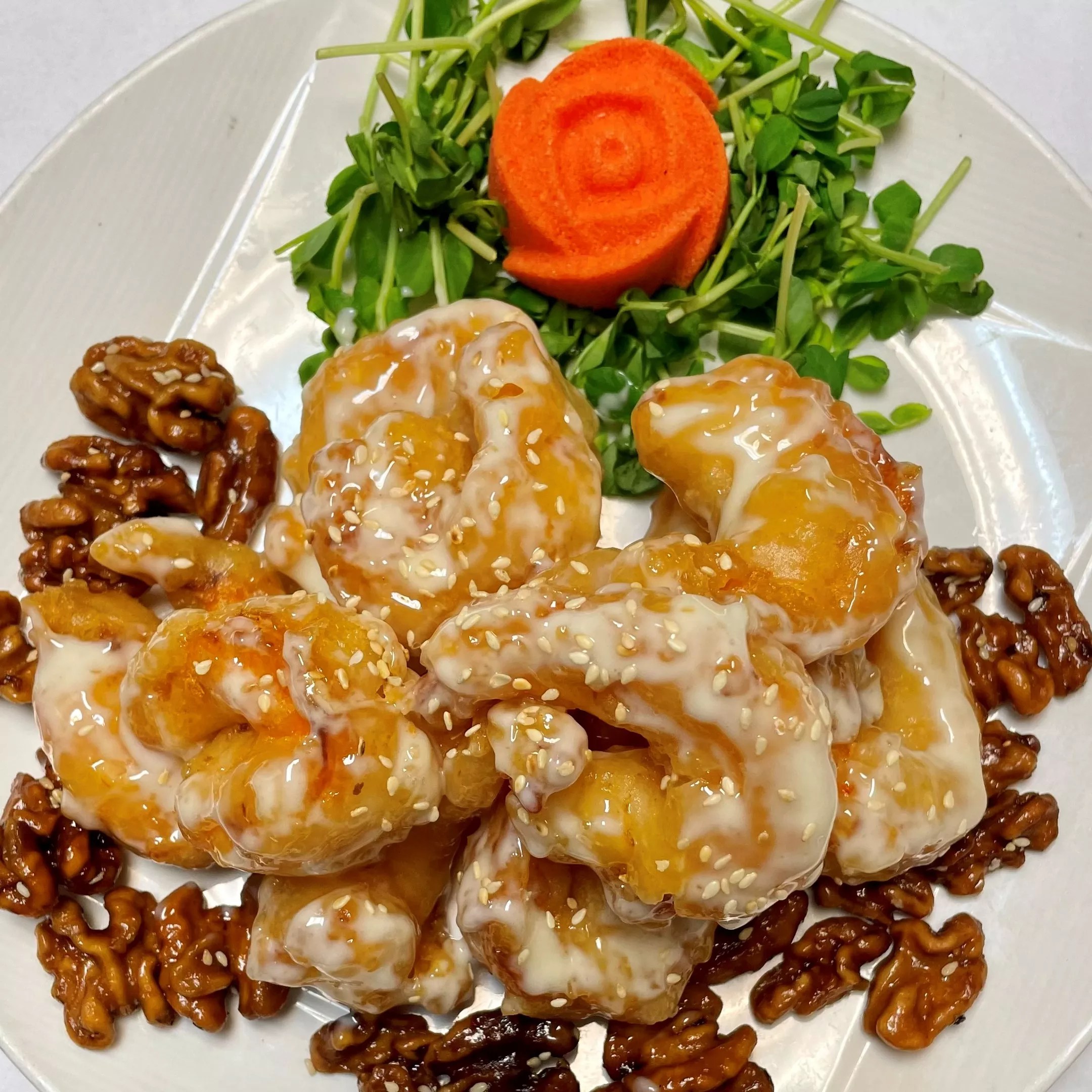Shrimp with honey-glazed walnuts will be one of 10 courses served at the Chinese New Year Banquet at Great Wall Restaurant.