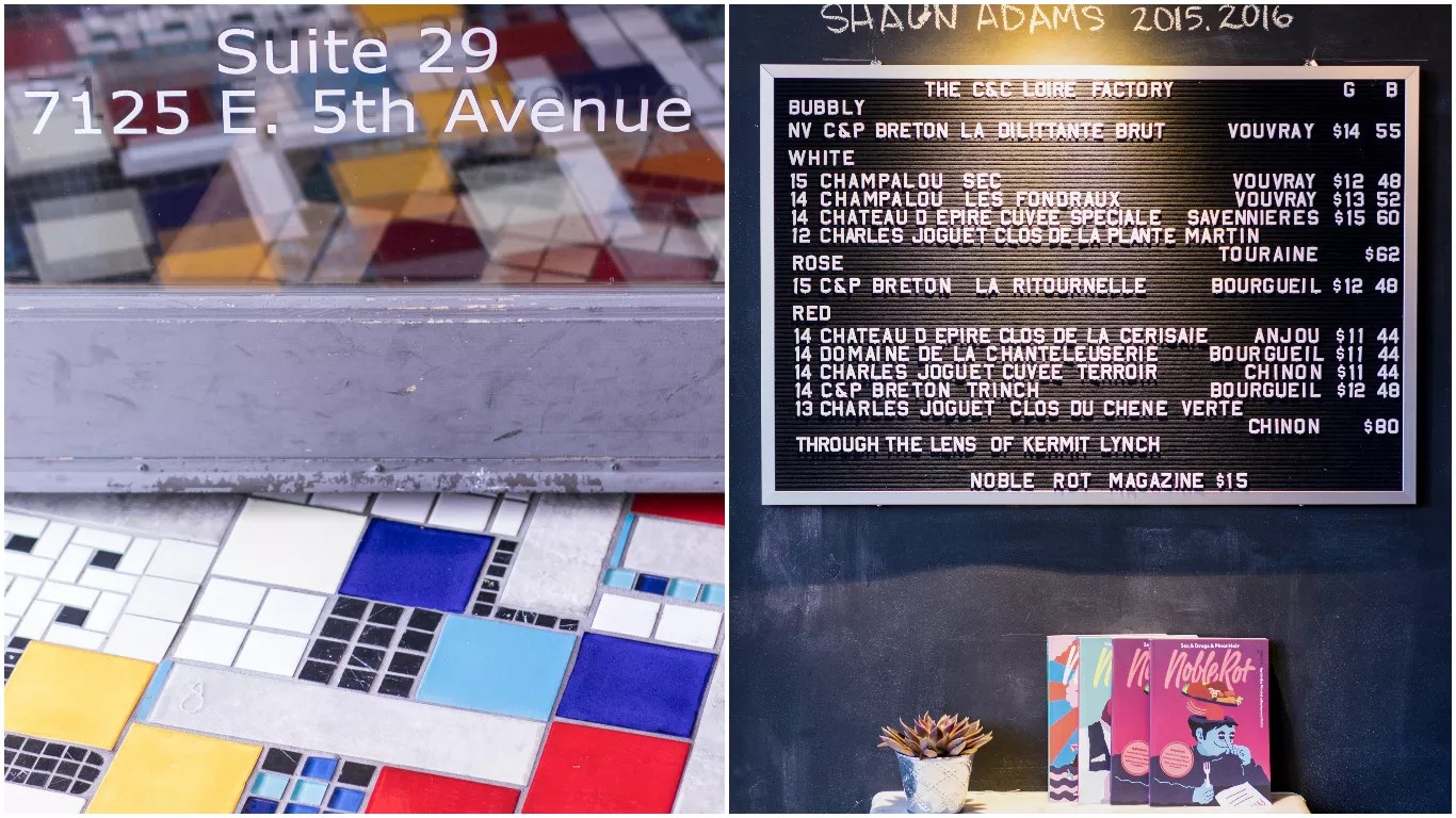 Left: the entrance to the FnB Bar. Right: Milic’s Loire Valley wine list launched Thursday, and will stick for about a month.