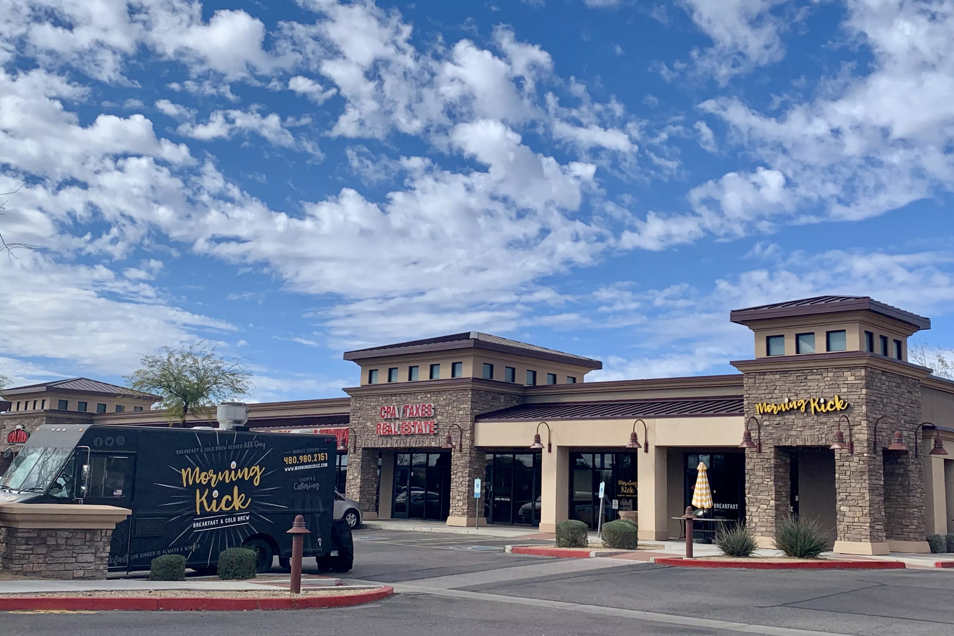 With increased popularity, Morning Kick was ready for another expansion. The couple considered a second food truck, which proved difficult to manage. Instead, they chose brick and mortar. “It had to be in Gilbert because that’s our town,” Mindy says. They found the ideal spot on Chandler Heights Road, expanded the menu, hired extra people, and went to work. Morning Kick Breakfast & Cold Brew opened in January 2020.