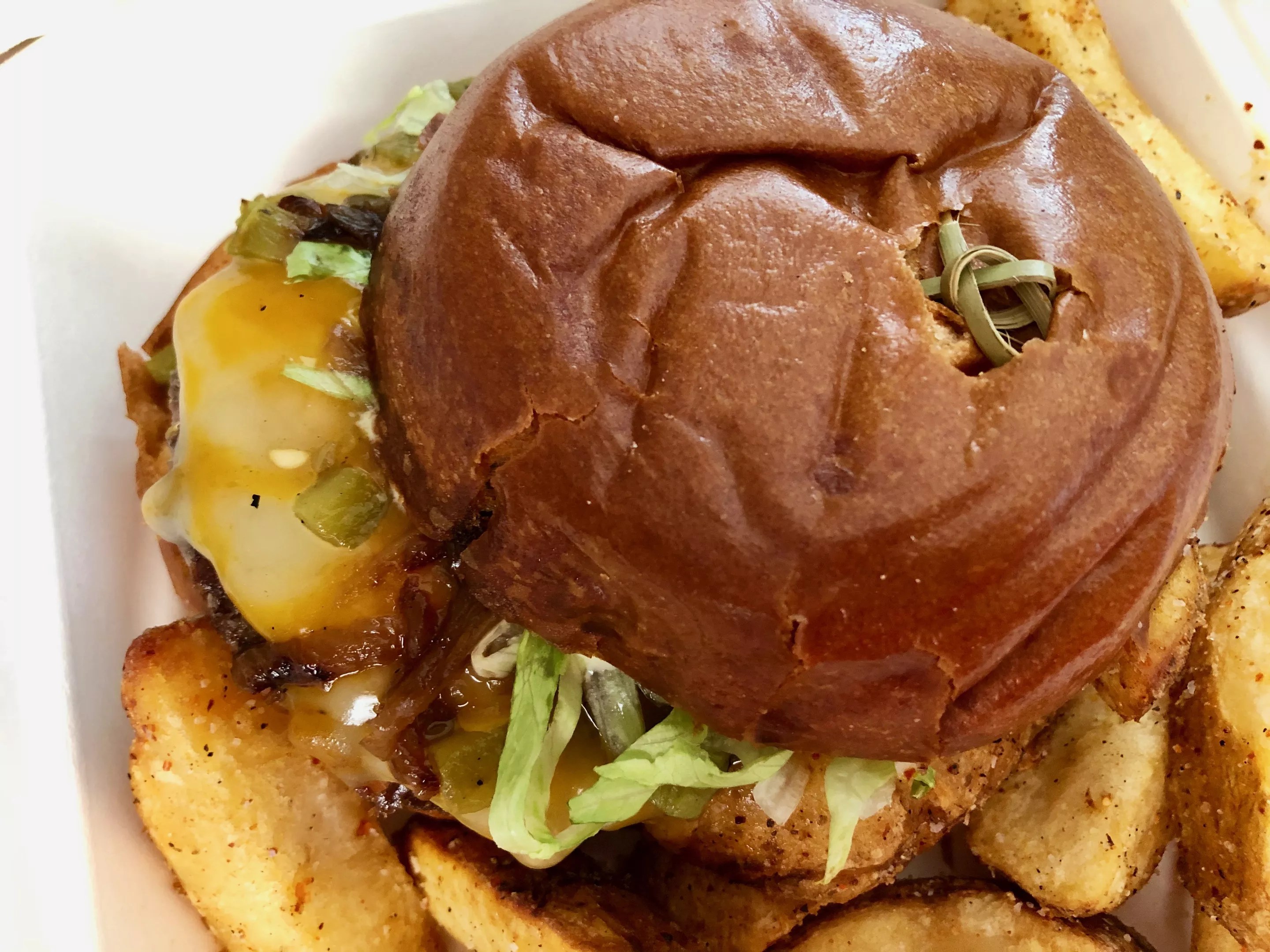 The brisket burger, ordered medium rare, was very juicy and topped with fire-roasted Hatch green chilis, Colby Jack cheese, caramelized onion, shredded lettuce, and pickled tomatillos – which provided the majority of the burger’s heat.