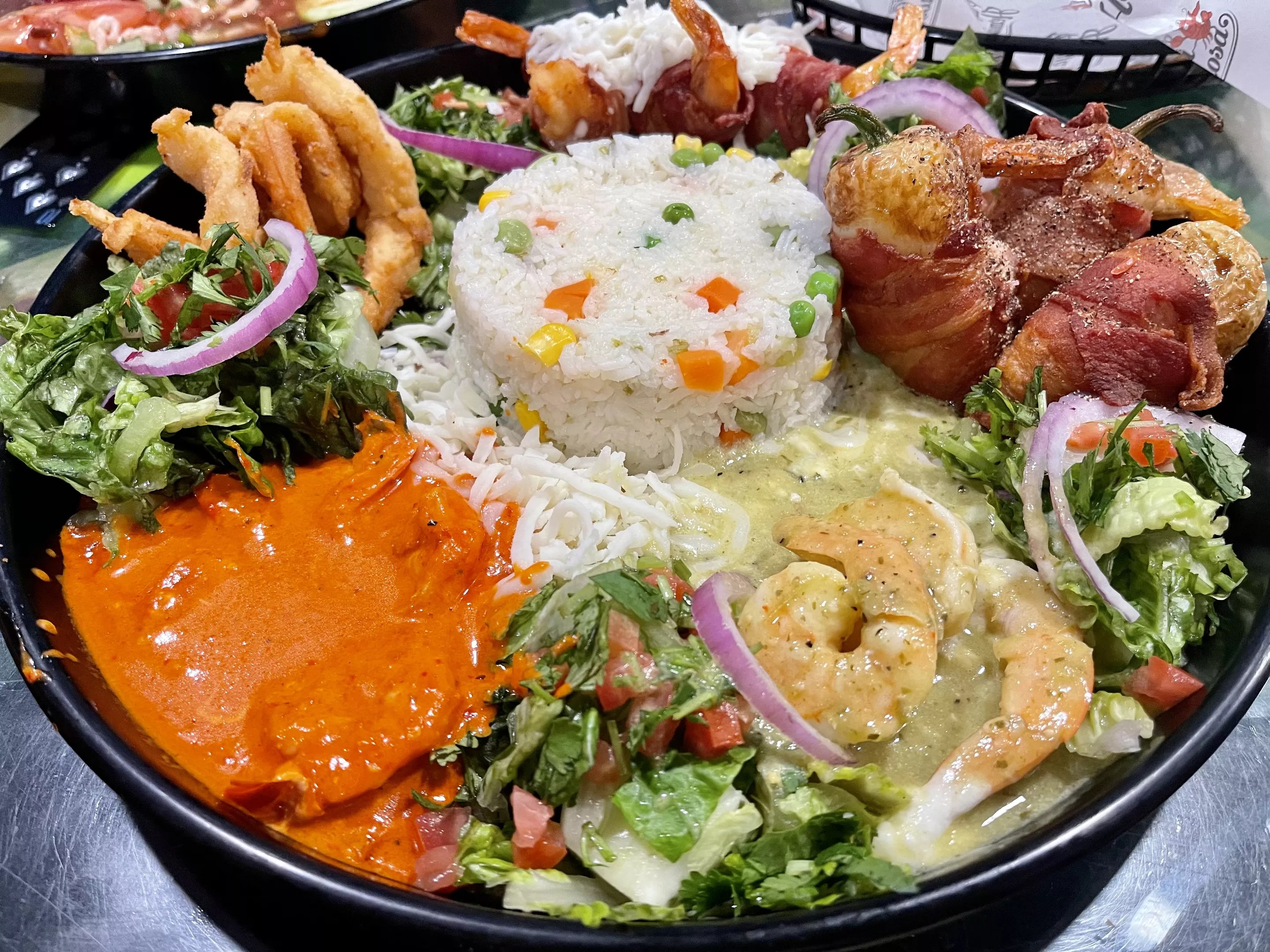 If you’re not sure what to order, we suggest the Plato del Capitan, a sampler platter that offers a little taste of multiple entrees, including fried shrimp, bacon-wrapped peppers, and shrimp in a creamy tomatillo-based sauce that perfectly soaks into bites of soft rice and veggies. Celebrate birthdays and other special occasions with a whole fried fish, or just stop in for a quick lunch burrito.