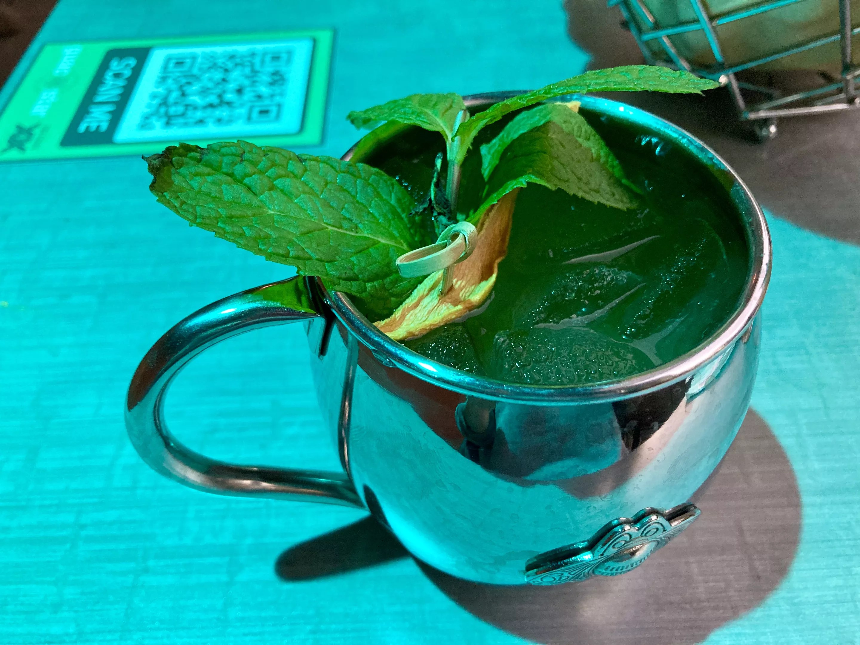 The cocktails here are all tequila-based. Mi Tia is a tropical drink using tequila and all the fun Tiki ingredients (creme de coconut, pineapple and lime juice, vanilla bean extract). This drink sounded incredibly up my alley, and while good and good-looking, I’ve had much better (and stronger) Tiki drinks elsewhere (at places like The Ostrich or The Drunk Munk). Same with the Funky Donkey, a tequila version of a Moscow Mule that would still be appealing to those who might not love the smell and taste of tequila (like my dinner companion). But the lime juice, mango puree, mint Demerara simple syrup, and Q Mixers ginger beer meant this burro was not long for this world. However, there are better mules out there (like at AZ/88 or even The Duce).