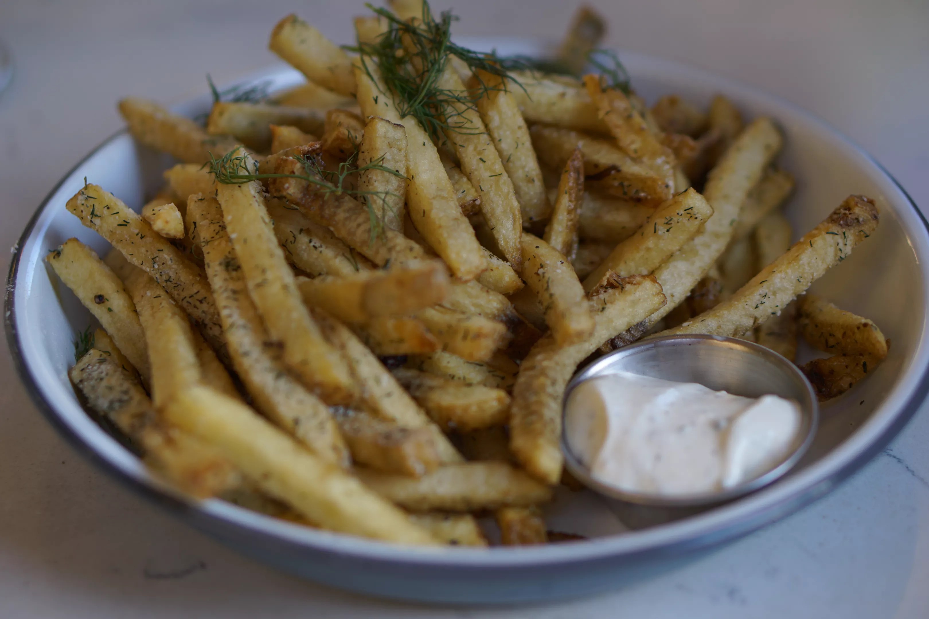 The Food: Handcut has an “ethos” and a “culture” (who doesn’t?) that involves grass-fed beef from locally sourced cattle. Given the hip, edgy look of Handcut’s aesthetic, it was surprising and refreshing to learn about their commitment to sustainable, local, quality beef as well. That said, our burger was rubbery. Salt and vinegar fries, with dill and a side of ranch. These alone make Handcut worth the trip. Melissa Campana