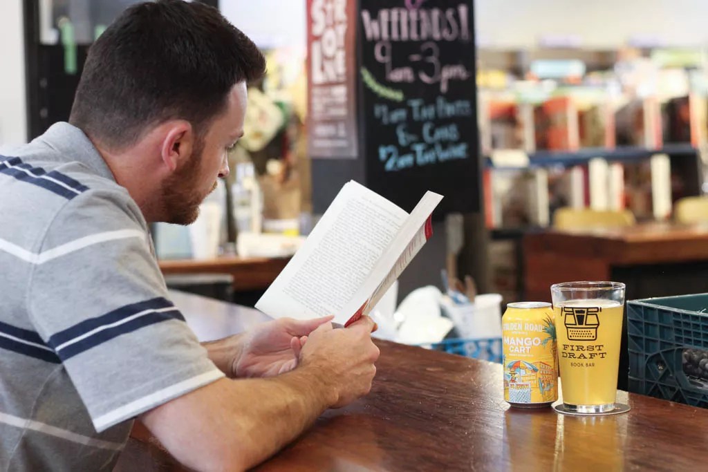 As the first of its kind in Phoenix, First Draft prides itself on creating a unique space that can host events like a coloring party sponsored by Modern Times Brewery. “We’re super-excited to have a place and a space that book lovers and beer and wine drinkers can come and feel welcome, and most importantly, have a conversation,” bar manager Van-Lam Tran says. With over 30 canned beers plus whatever’s on tap, it’s easy to order a craft beer like Golden Road’s Mango Cart to pair with your choice of reading.