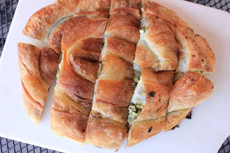 A spinach bourek cut. Jasenko Osmic likes to dip them in the Balkan Bakery’s tart yogurt.