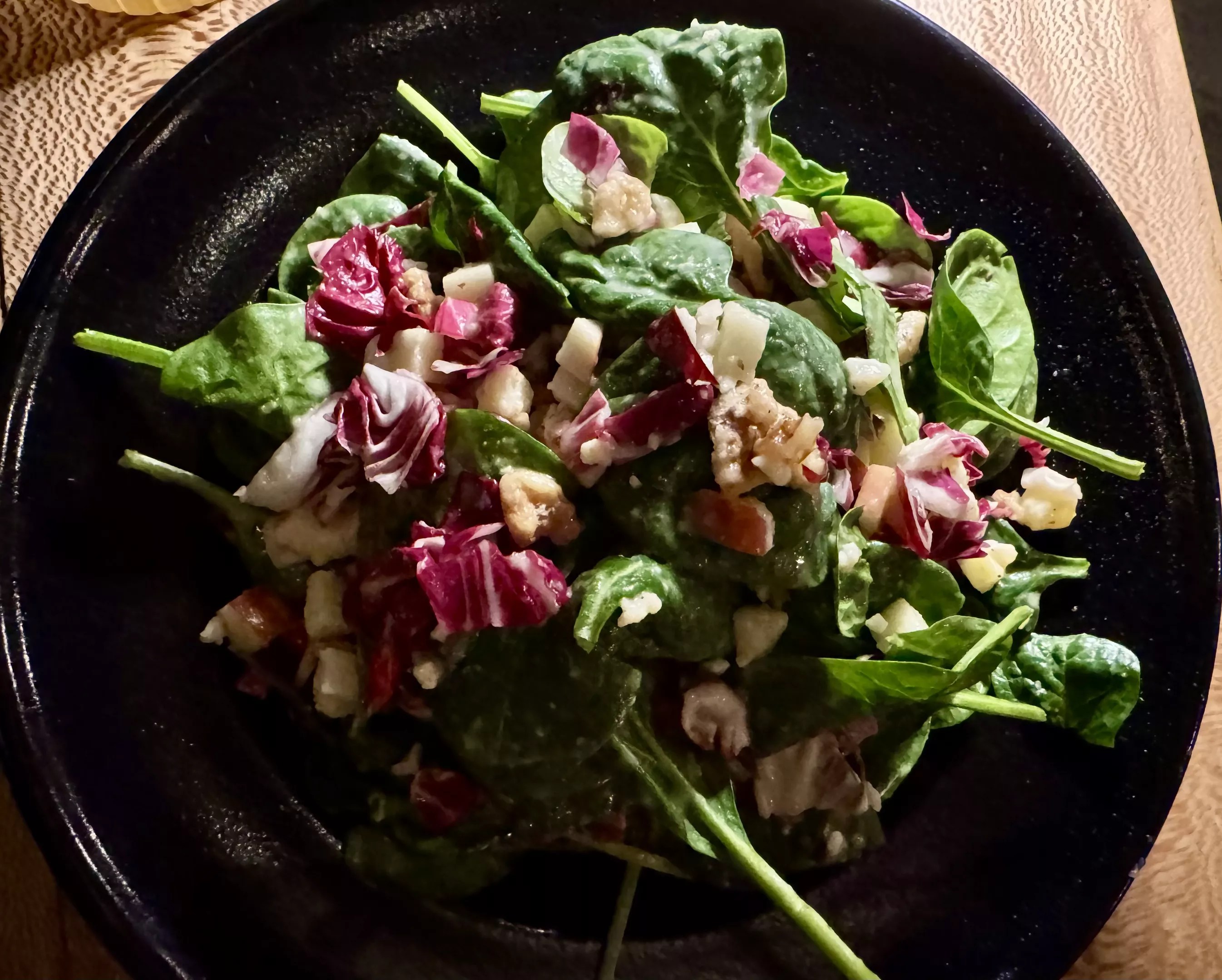 Industry Standard’s Astoria Chopped Salad is a mix of baby spinach, bitter radicchio and bits of Honeycrisp apple that are tossed with a vibrant roasted citrus dressing. Cubes of candied walnuts and sharp cheddar add a dose of richness.