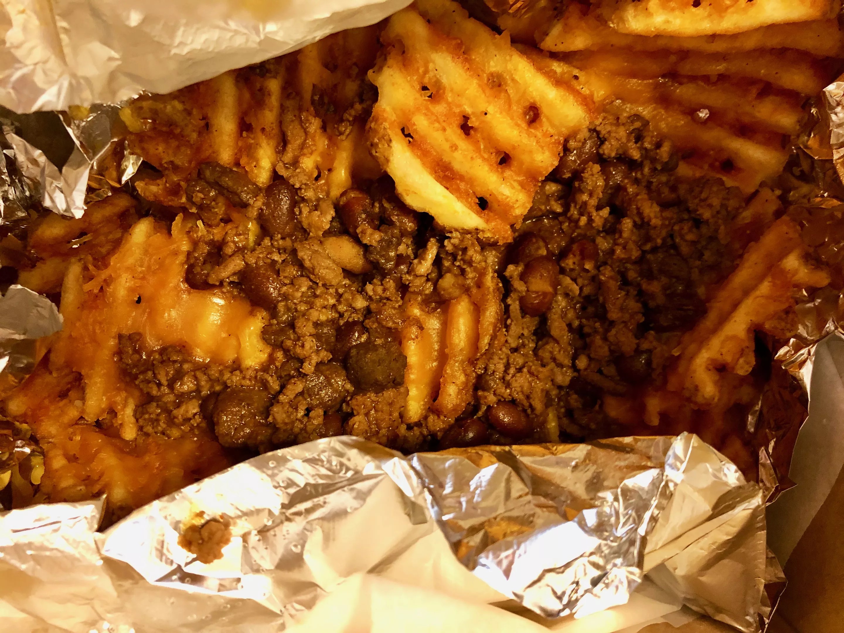 The only victims of my travel time were the fries. Jupiter Rings has some fun with the fries section of the menu, mixing and matching tots, shoestring, and sweet potato fries with toppings like pizza, carne asada, a loaded baked potato arrangement, and cheesy garlic shrimp. I went with chili cheese waffle fries. The poor takeout order had congealed cheese and slightly less hot chili. But a quick reheat did the trick. We can only imagine (and hope to soon find out) how good these can be fresh, in the restaurant. The vegan buffalo chicken sandwich. Lauren Cusimano