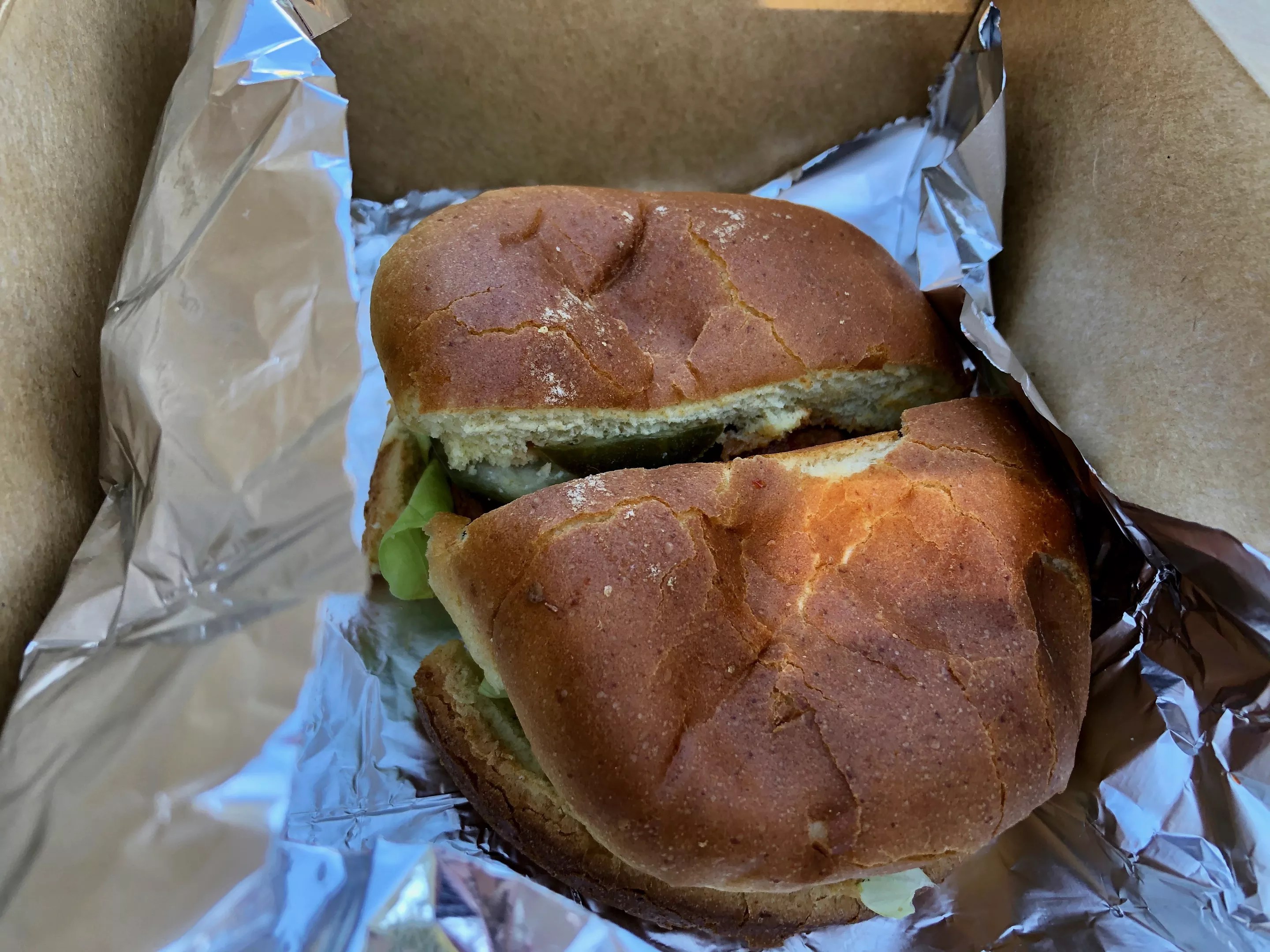 The vegan buffalo chicken sandwich, found on the “And More” section, is $5. I didn’t try it, but I’m told the bun has a slight sweetness and pillowy texture somewhat reminiscent of Portuguese sweet bread. Jupiter Rings also offers a vegan naked chicken sandwich, as well as vegan treats, including vegan cookies from the Goodyear-based Belle Sweets Bakery.