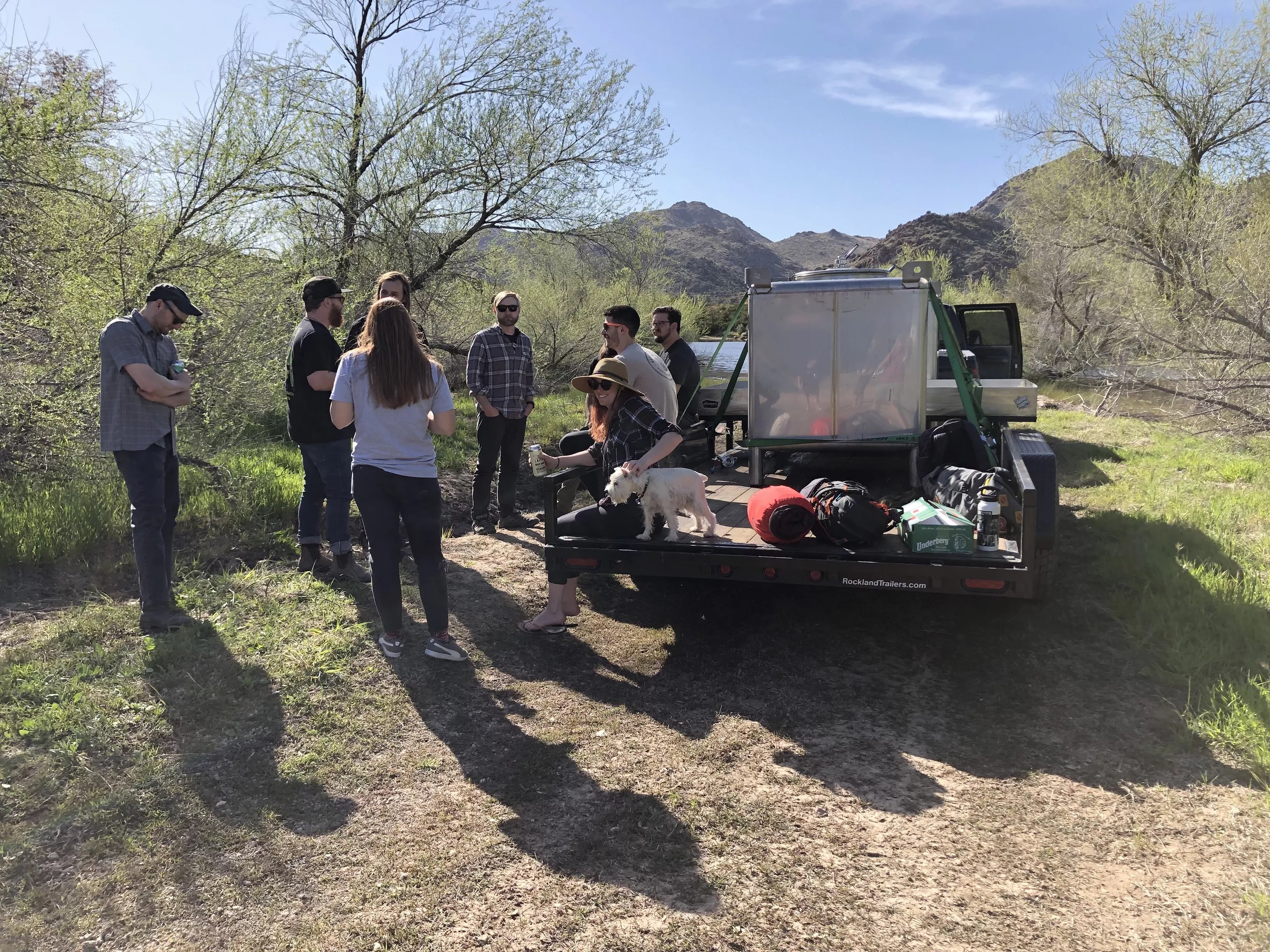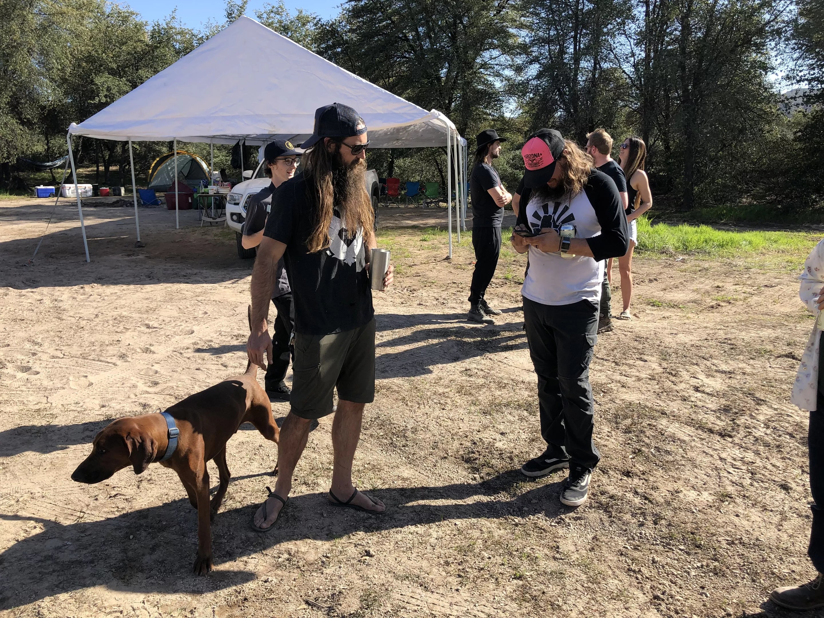 Brewers from near and far kicking it as Wilderness prepares to innoculate a coolship beer with wild yeasts.