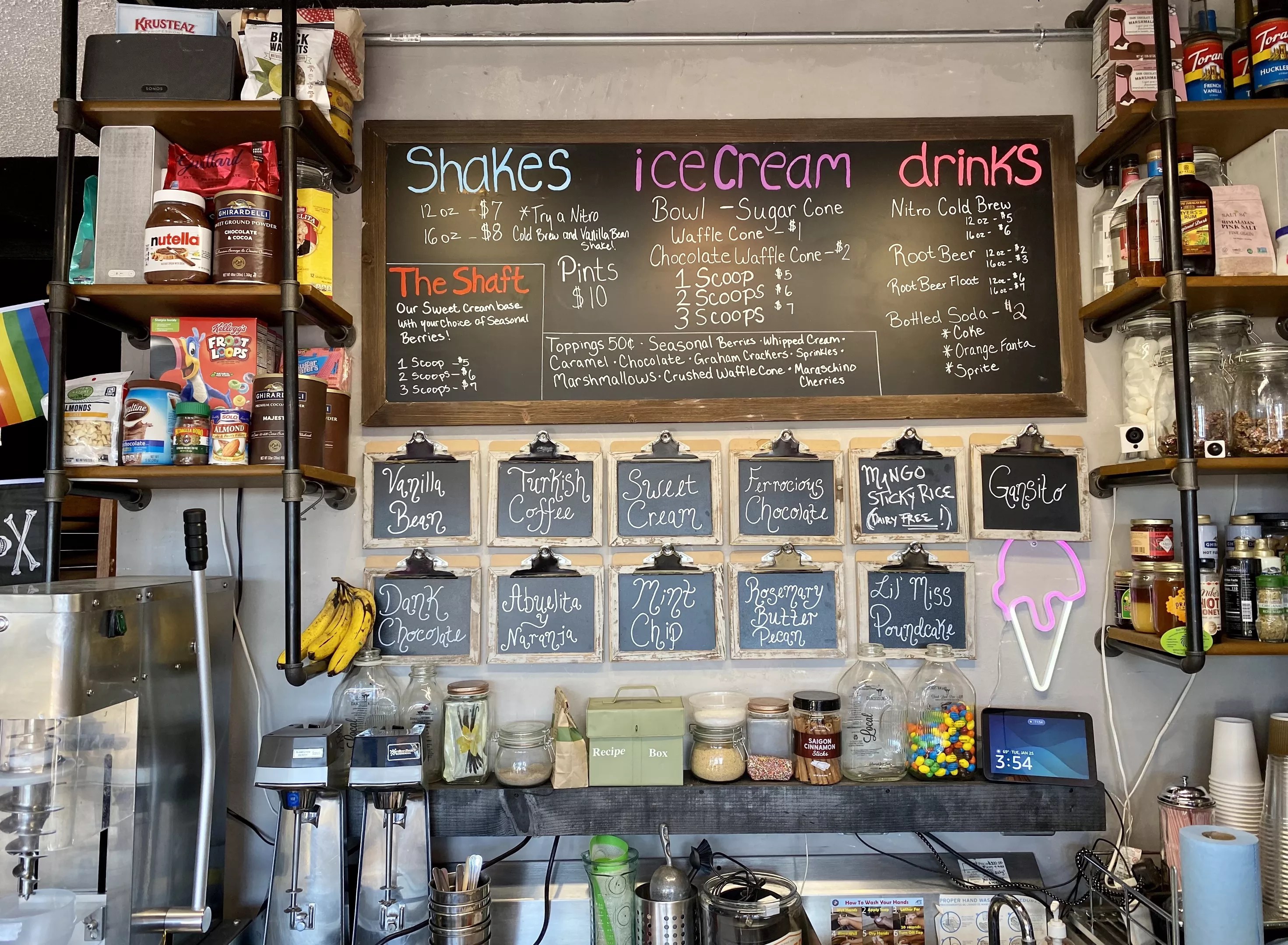 And then there’s owner Rich Dolan, a kid at heart who, along with infusing his mint chip ice cream with fresh mint, infuses the whole shop with nostalgia, right down to the 1950s-style soda jerk hat he wears. Dolan didn’t want to create just any ice cream shop; he wanted the ice cream shop of his dreams – the kind of place where he can say, “It’s my ice cream shop, and I’ll have root beer on tap if I want.”
