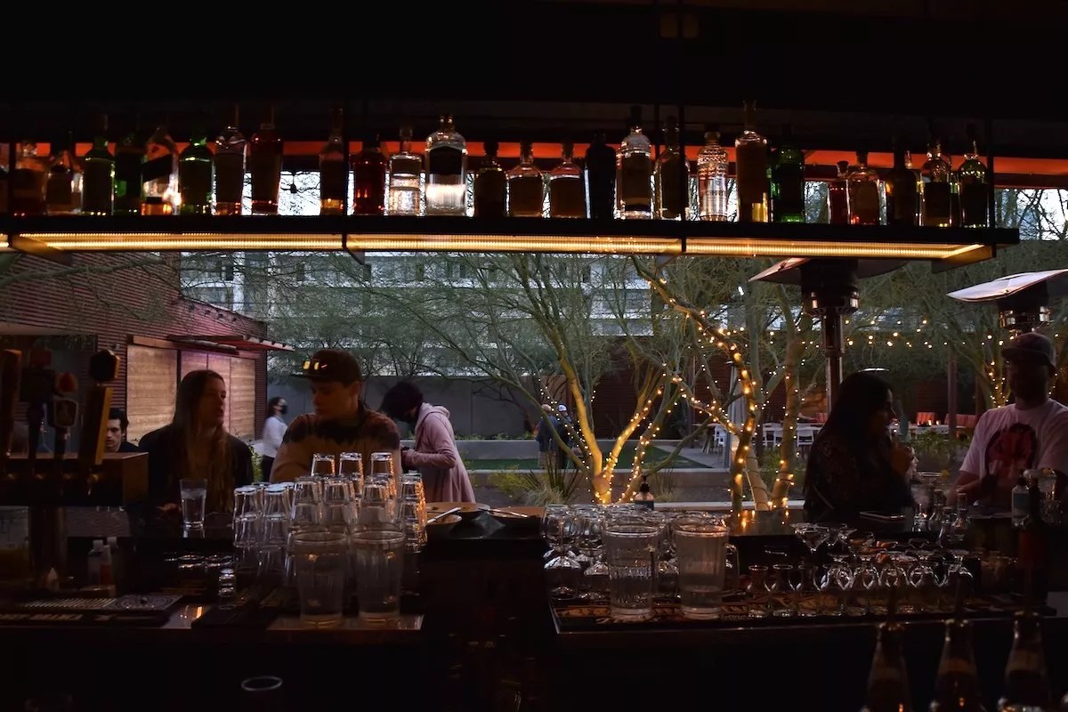 602-842-7181 You’ll get points for picking Sidecar Social Club, an under-the-radar rendezvous spot with “I-didn’t-even-know-it-was-here” feels and a separate side entrance from sister restaurant Ocotillo. The place was practically made for first dates. Its dark, sleek ambiance feels like you’re stepping back in time, and drinks follow suit. Order classic cocktails, like an Old Fashioned or Negroni, and sit at the buzzy indoor and outdoor bar or tuck into one of the mini booths built for two, perfect for handholding across the table. The inconspicuous spot shares the twinkle lights from Ocotillo’s patio by night, and come Sunday brunch, you can have a boozy morning meal with cinnamon roll French toast or a breakfast chimichanga.