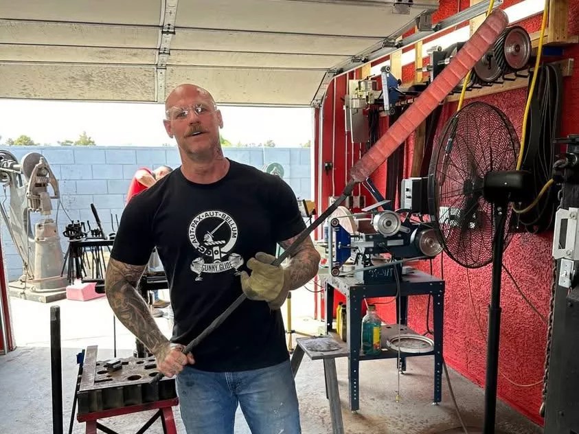 At an unassuming workshop in Tempe, Corey Dunlap forges steel at over 2,100 degrees Fahrenheit.