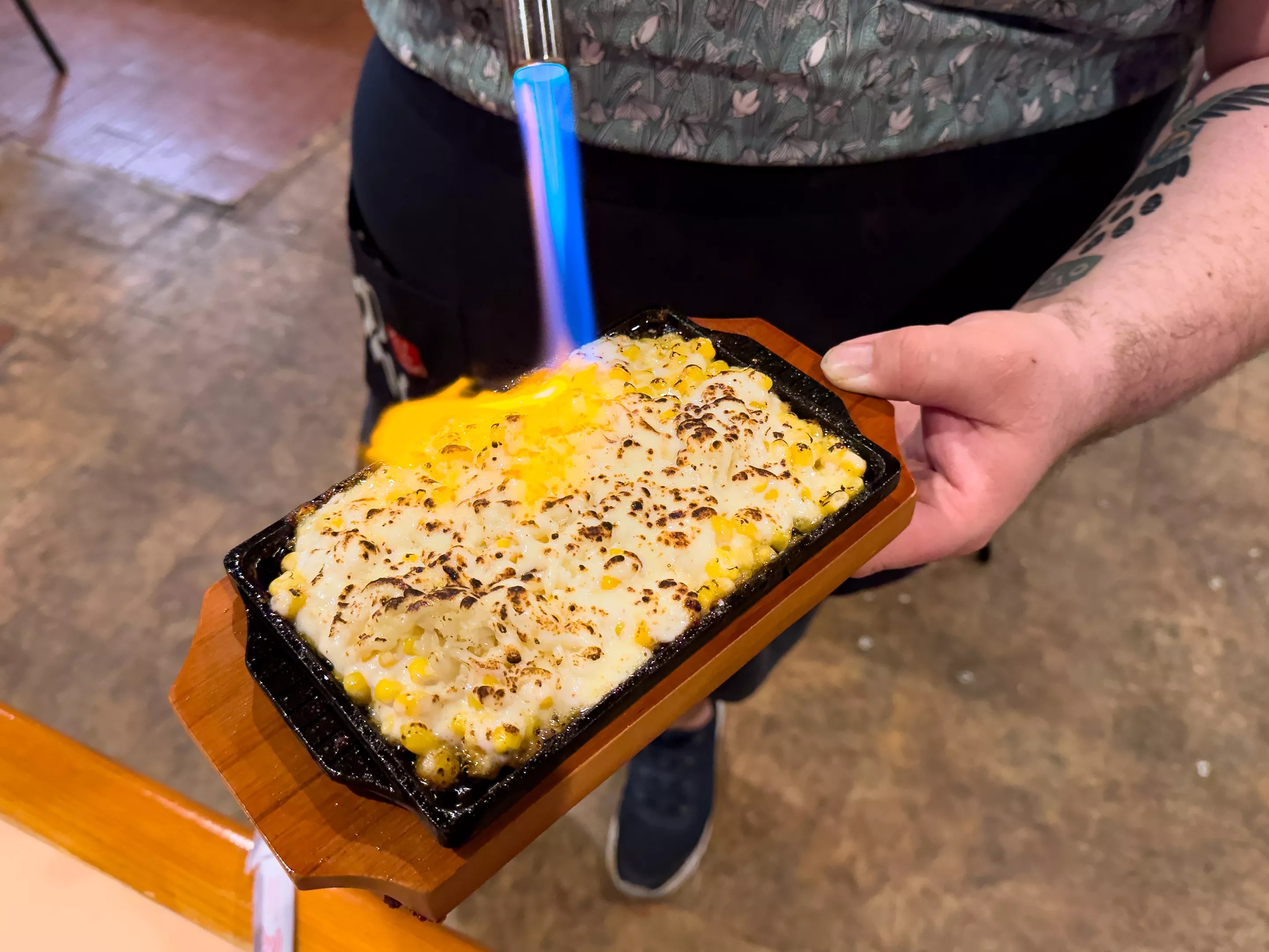 The staff torches the corn cheese tableside, lending it a bit of smoky char.