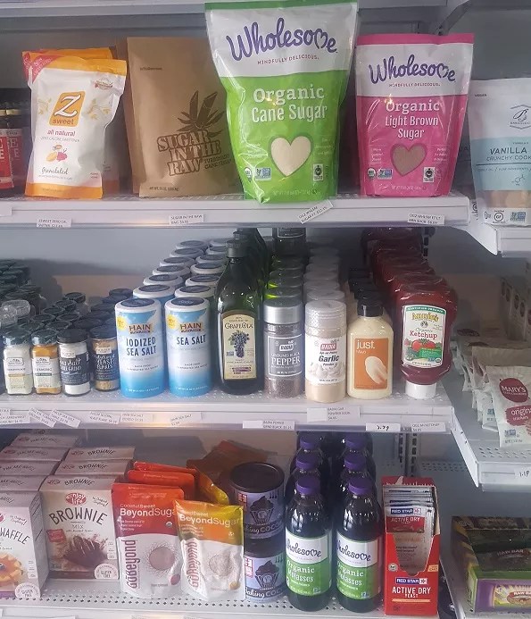 Some things you’ll find on the shelves are salad dressings, sweet treats, soups, pastas – including a few mac-and-cheese kits – along with pet eats and supplies, and household cleaning products.