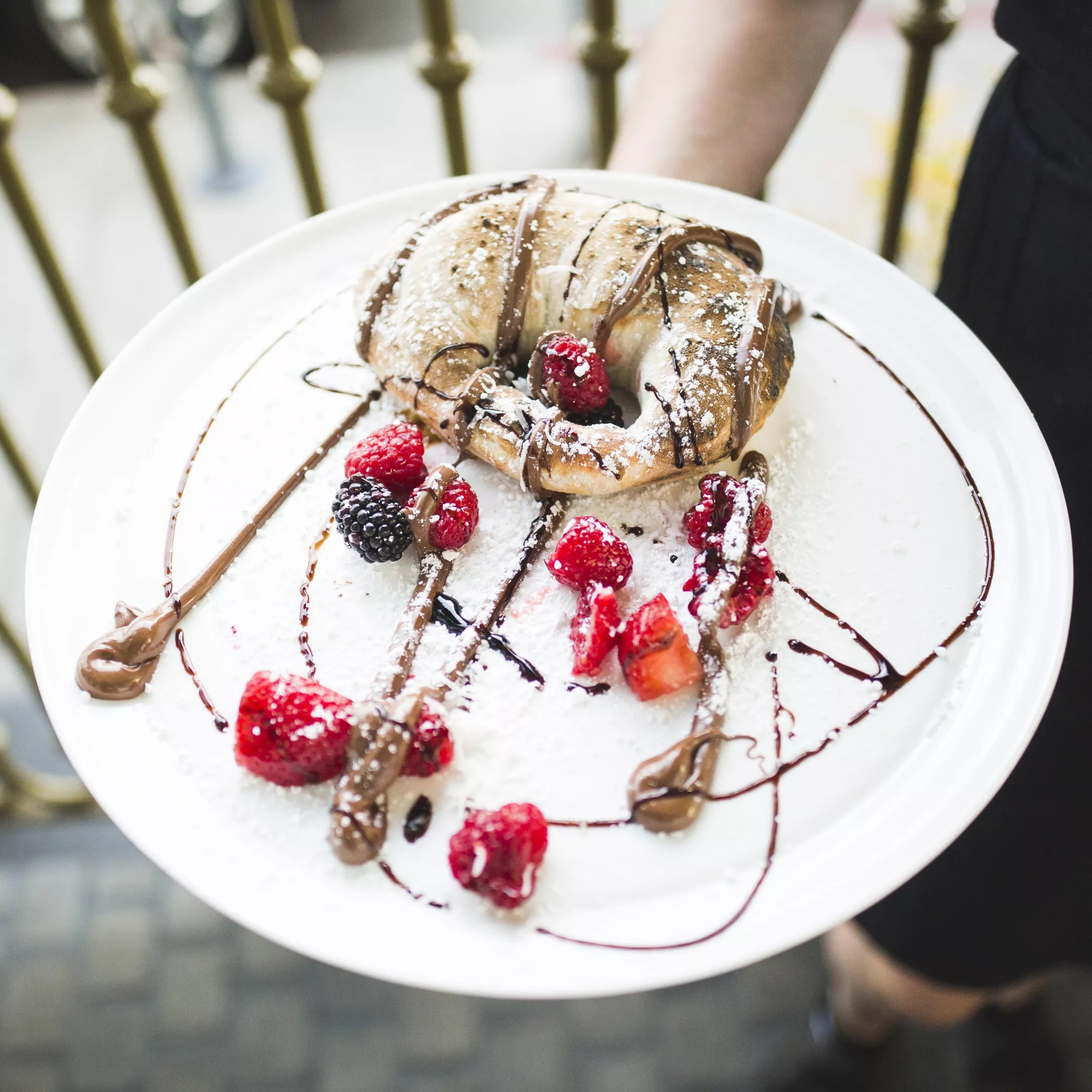 In addition to good coffee, tea, and gelato selections, dessert includes colorful options like their Instagram-ready Nutella-and-berry calzone.