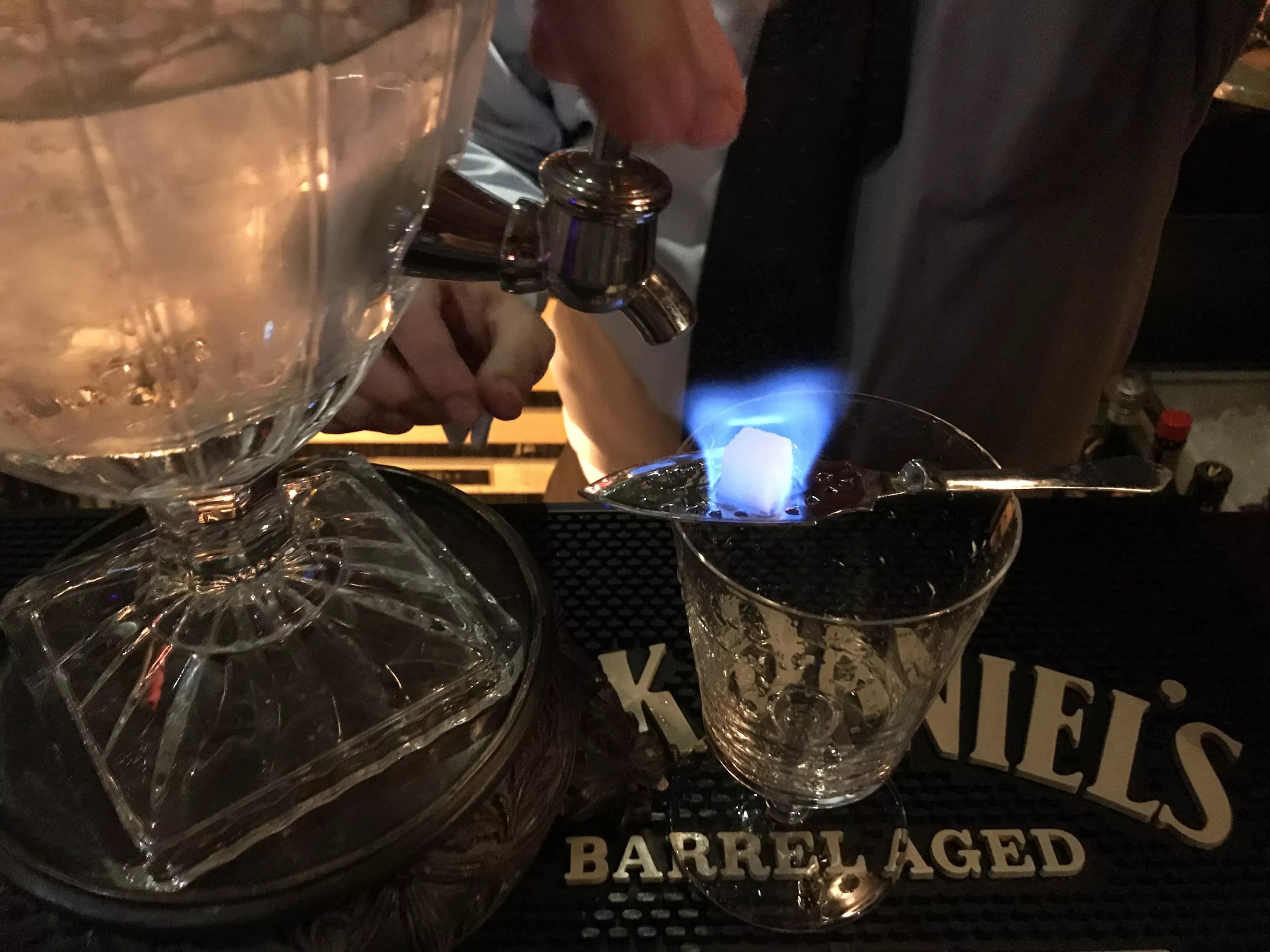 As Boehme builds the drink to order in vintage crystal glasses, he asks his guests to take sips throughout the process. They even pick their own ice and sugar cubes with copper tongs.