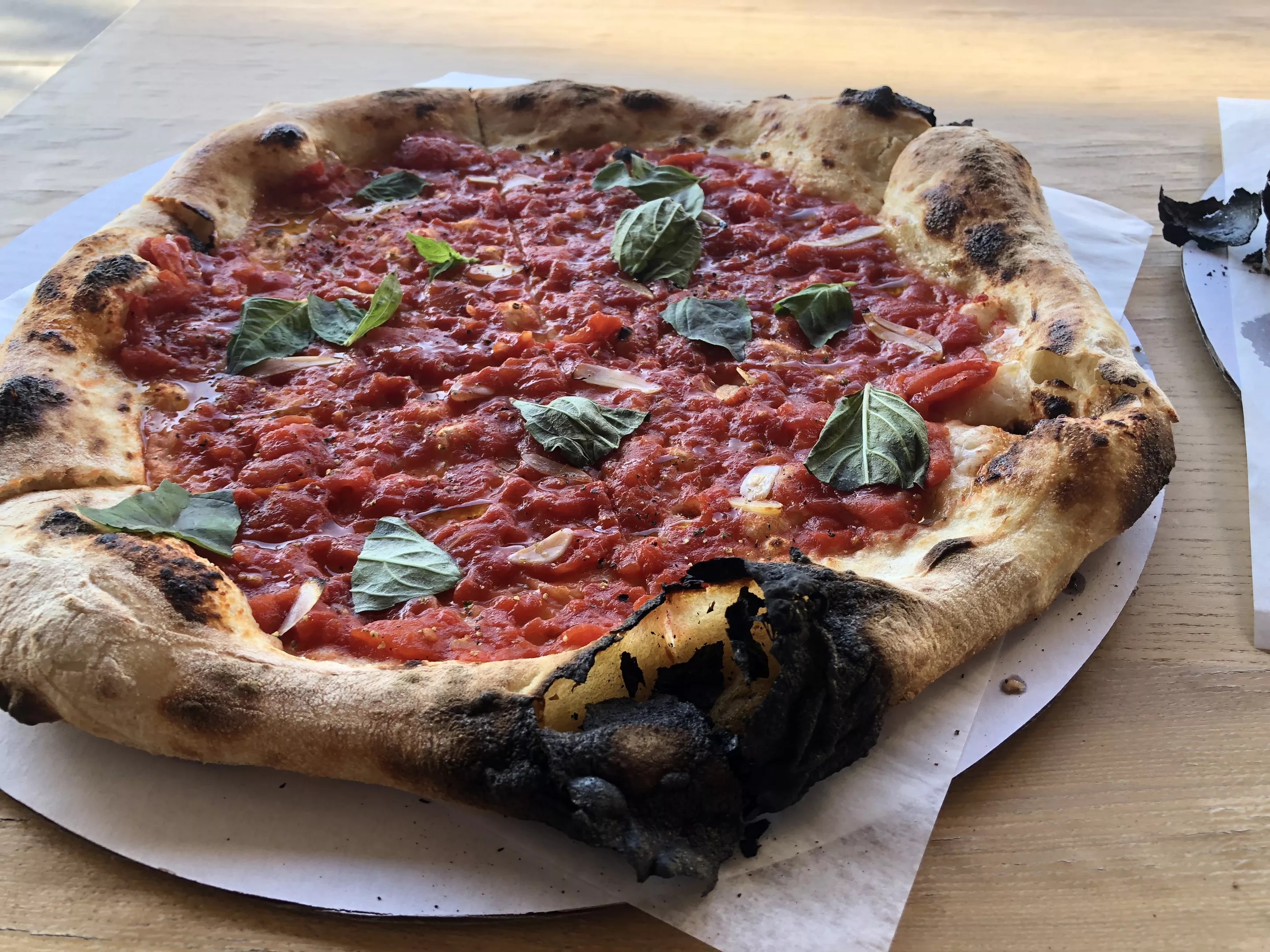 I can’t think of many pizzas I would eat on 100-degree days. I don’t know many places crisping pizza I can inhale two-slices-in-one-minute on a broiling sidewalk, dripping sweat on a late Friday afternoon.