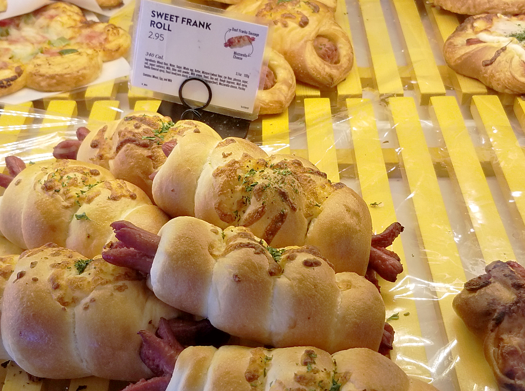 You’ll find plenty of savory pastries at Tous Les Jours, including frank-stuffed rolls.