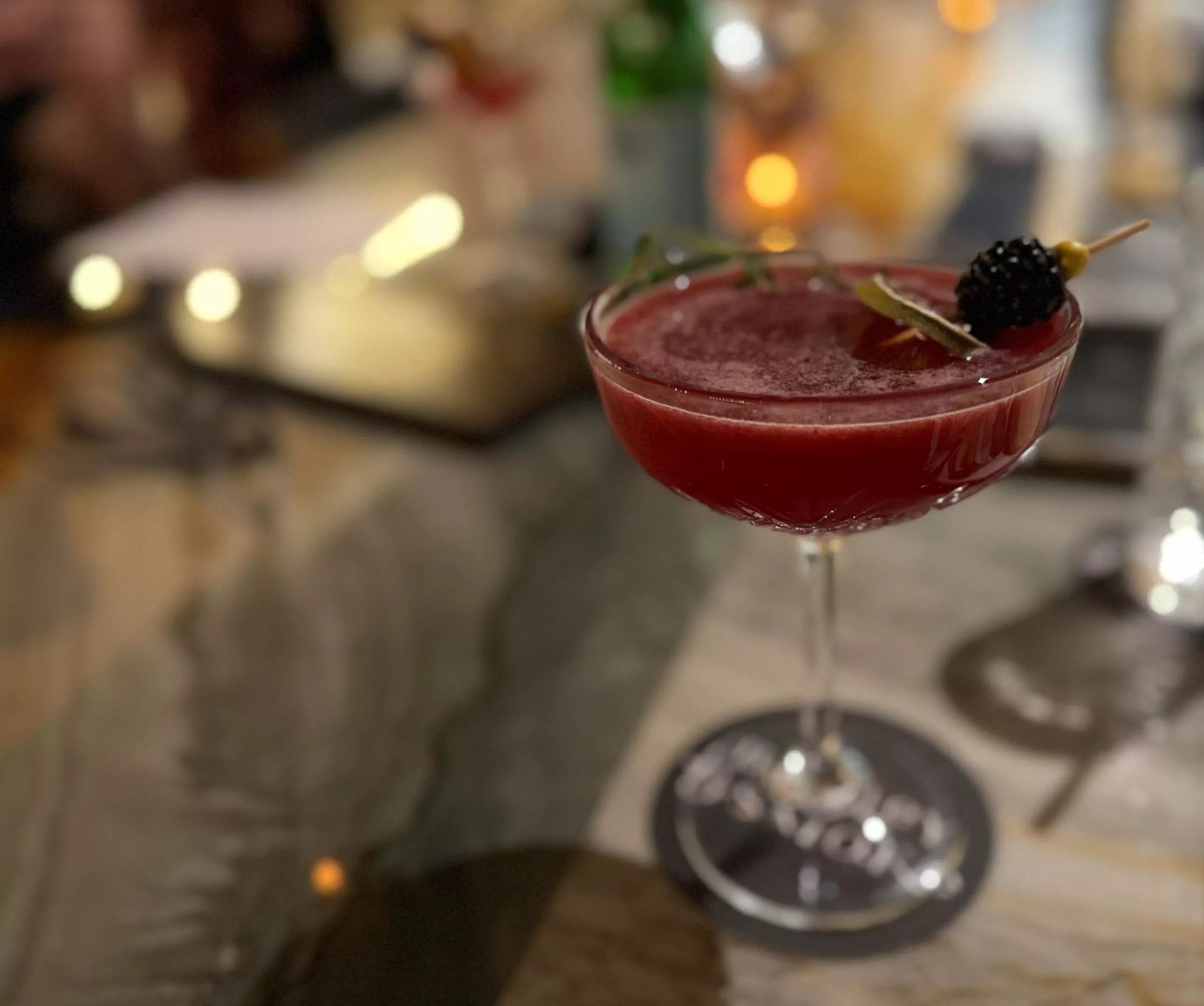 The Blackberry Thyme-Out celebrates its namesake ingredients in this gin-based cocktail.