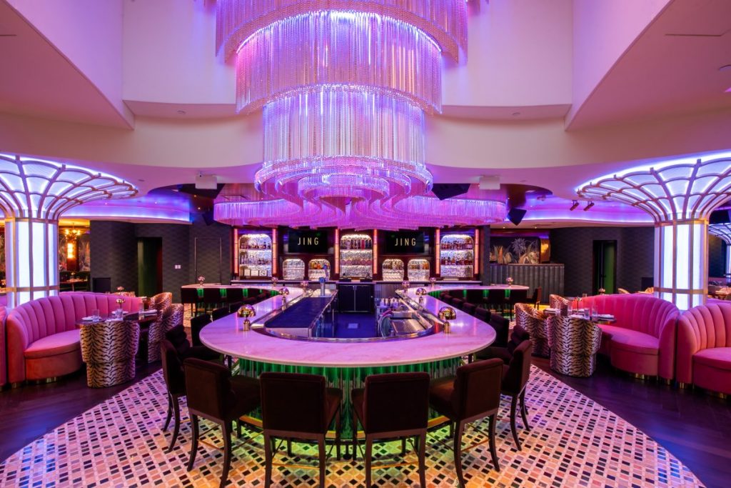 “Jing means the synergistic balance of energy between light and dark and fire and water. It’s the balance of everything,” Corporate Executive Chef Thomas Griese says. “The high-end luxury steakhouse vibes, the sushi, the wok elements, they’re all here.”