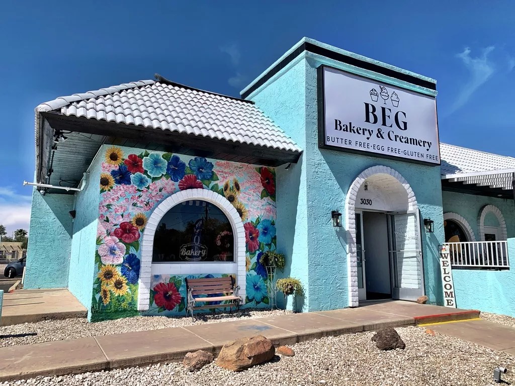 On a typical sunny day, as you drive to BEG Bakery & Creamery in Scottsdale, the turquoise building shining in the distance fills you with the thrill of anticipation. BEG stands for butter-, egg-, and gluten-free.
