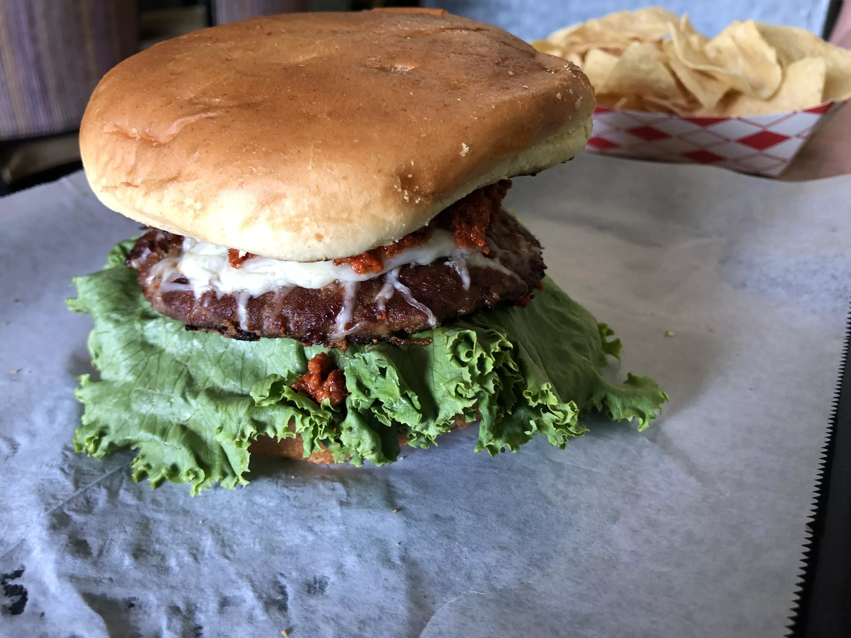 Burgers come in a few versions, two reveling in chile heat. A red chile Chimayo burger draws some spice from a blend of ancho and chorizo. A green chile burger highlights a New Mexican-style green chile and lots of house guacamole. Patties get a crispy toasting on the flattop.