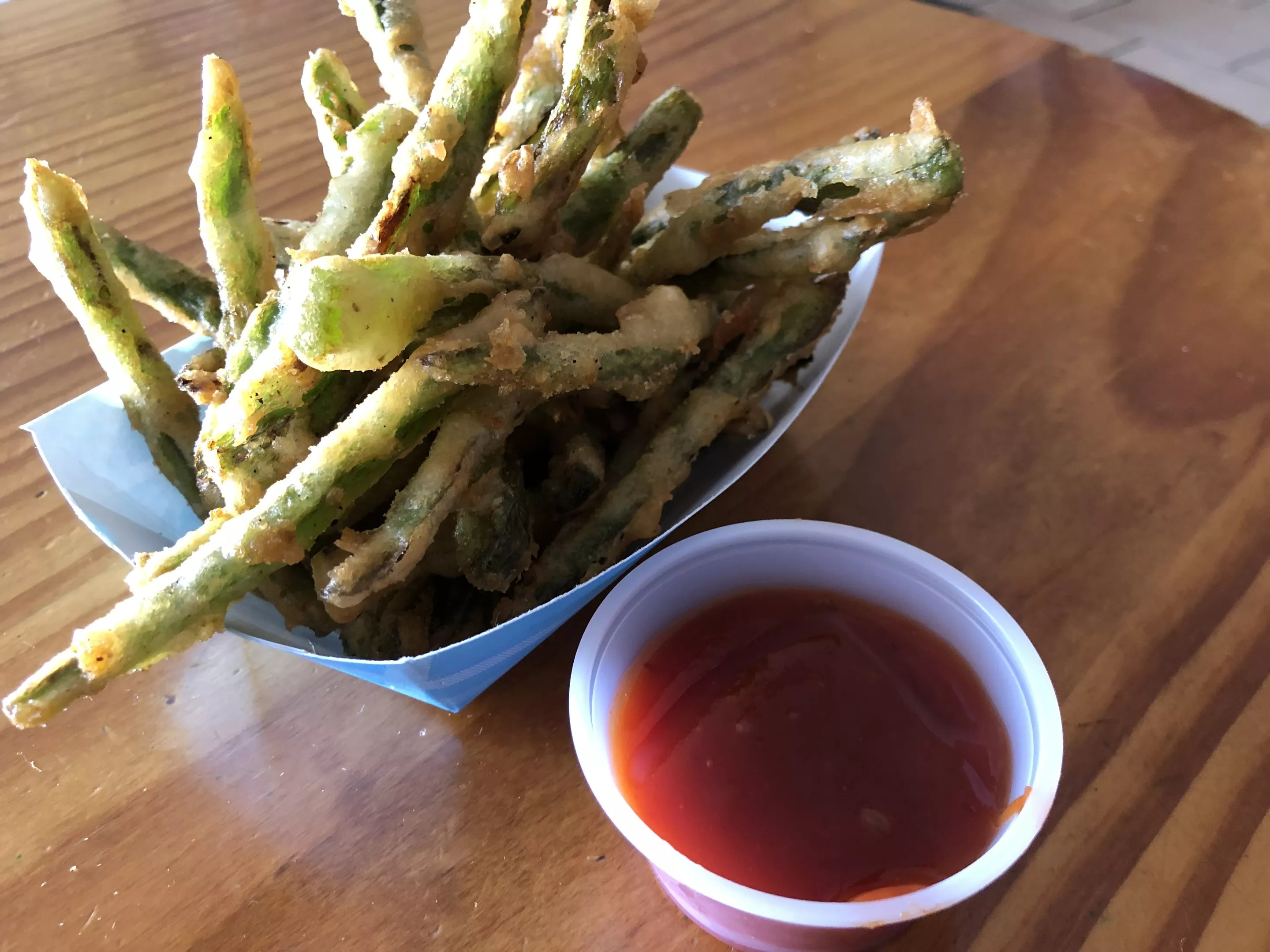 Paradise Valley Burger Co.’s jalapeño fries are composed of jalapeño shoe strings that are battered and fried until crispy, seasoned, and served with brown sugar and truffle ketchup.