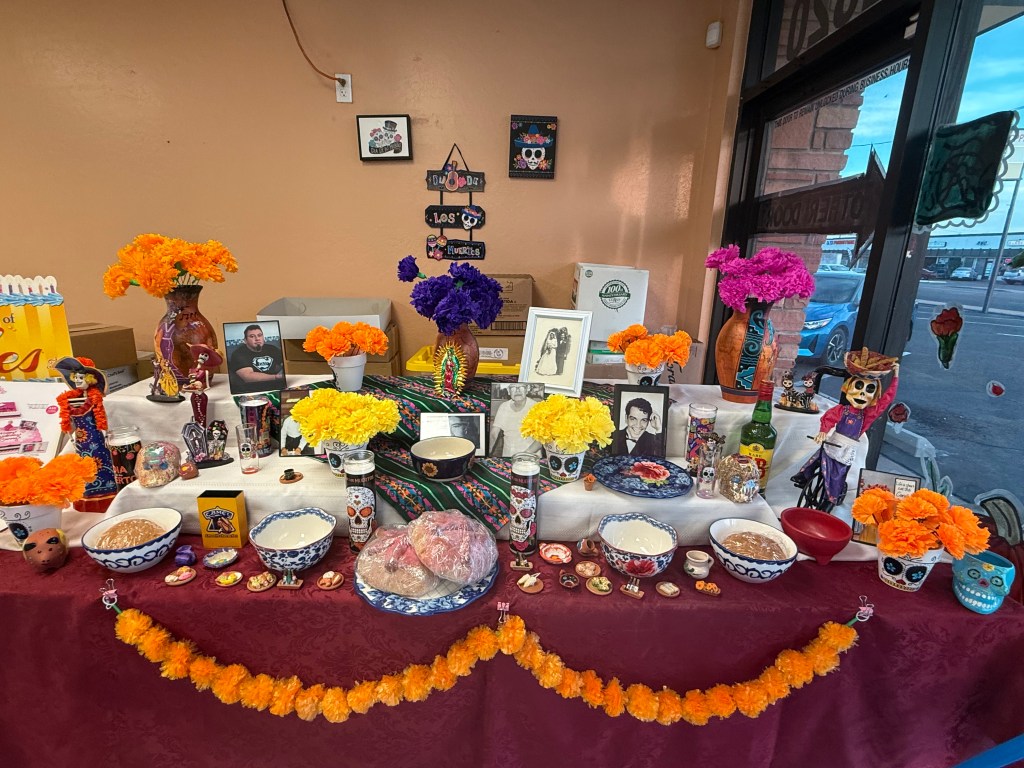 At their three locations, La Purísima sets up collaborative altars for Día de los Muertos. Employees are invited to bring photos of their departed loved ones, and customers also contribute by adding flowers, candles and pictures of their relatives or comedians and actors they loved.