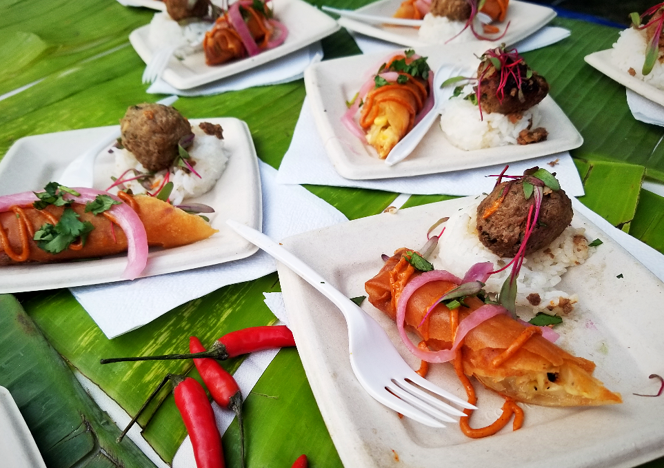 Good Fortune Kitchen, a pop-up Filipino restaurant, served corn-stuffed lumpia and adobo baboy meatballs.