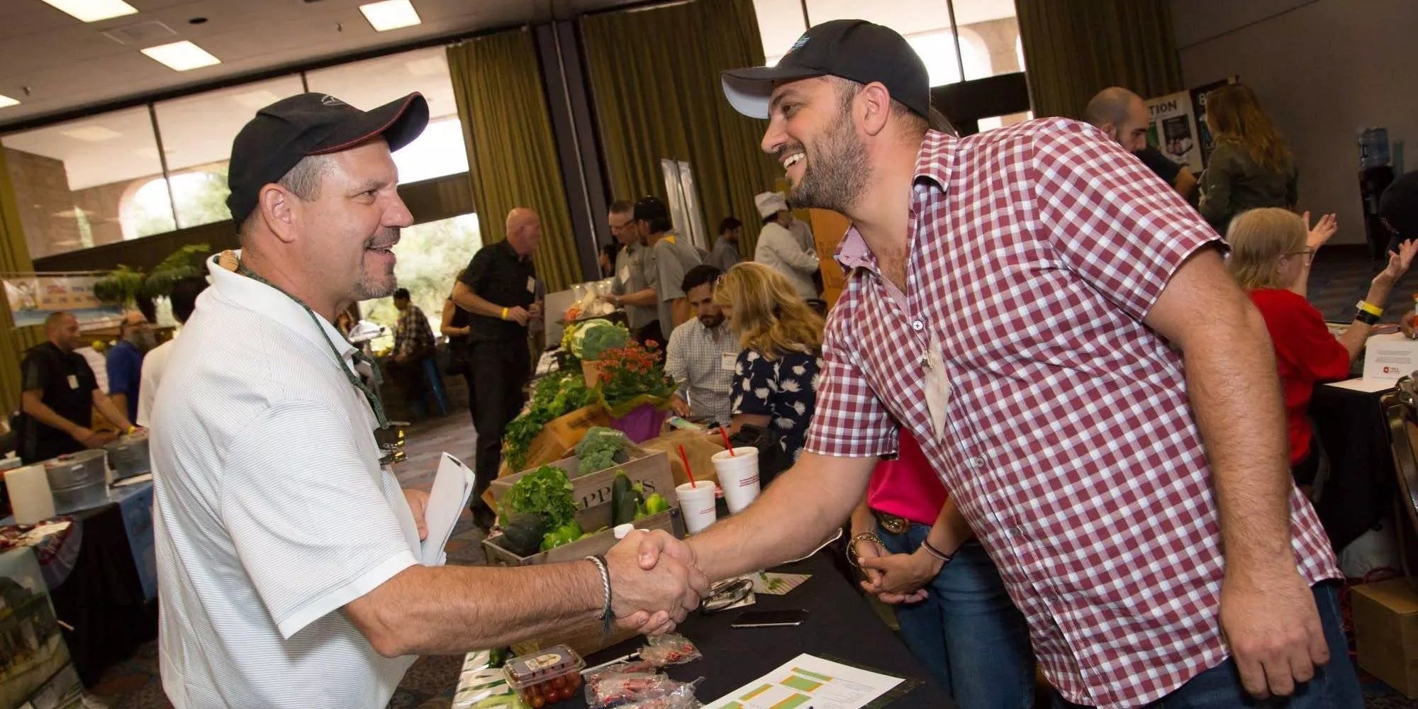 Two folks meeting at the Farmer + Chef Connection, now the Arizona Good Food Expo.