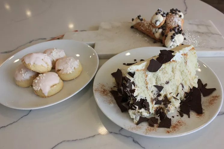 A Bakeshop in Phoenix specializes in Sicilian pastries. Owner Andrea Tuck does much more than Sicilian pastries, including custom cakes and macarons, but has a strong bond to the island south of mainland Italy. A Bakeshop’s Sicilian sweets are ricotta cookies, cheesecake, cannoli, and cassata. Cannoli shells rest empty in the display case. This is because they are filled with cream to order. That cream is sweetened ricotta on the compact side, shot through with tiny chocolate chips, and perfumed with a cool hint of cinnamon. Tuck’s two-bite ricotta cookies, smeared with vanilla icing and sprinkled, are puffy and light from use of the cheese. The cookie is barely sweet. She typically shoots for pastries “not too sweet, so people can actually finish the whole dessert.” Tuck bakes from the recipes of her great grandmother, Lilian Marchese. Marchese was from Palermo, capital of Sicily.