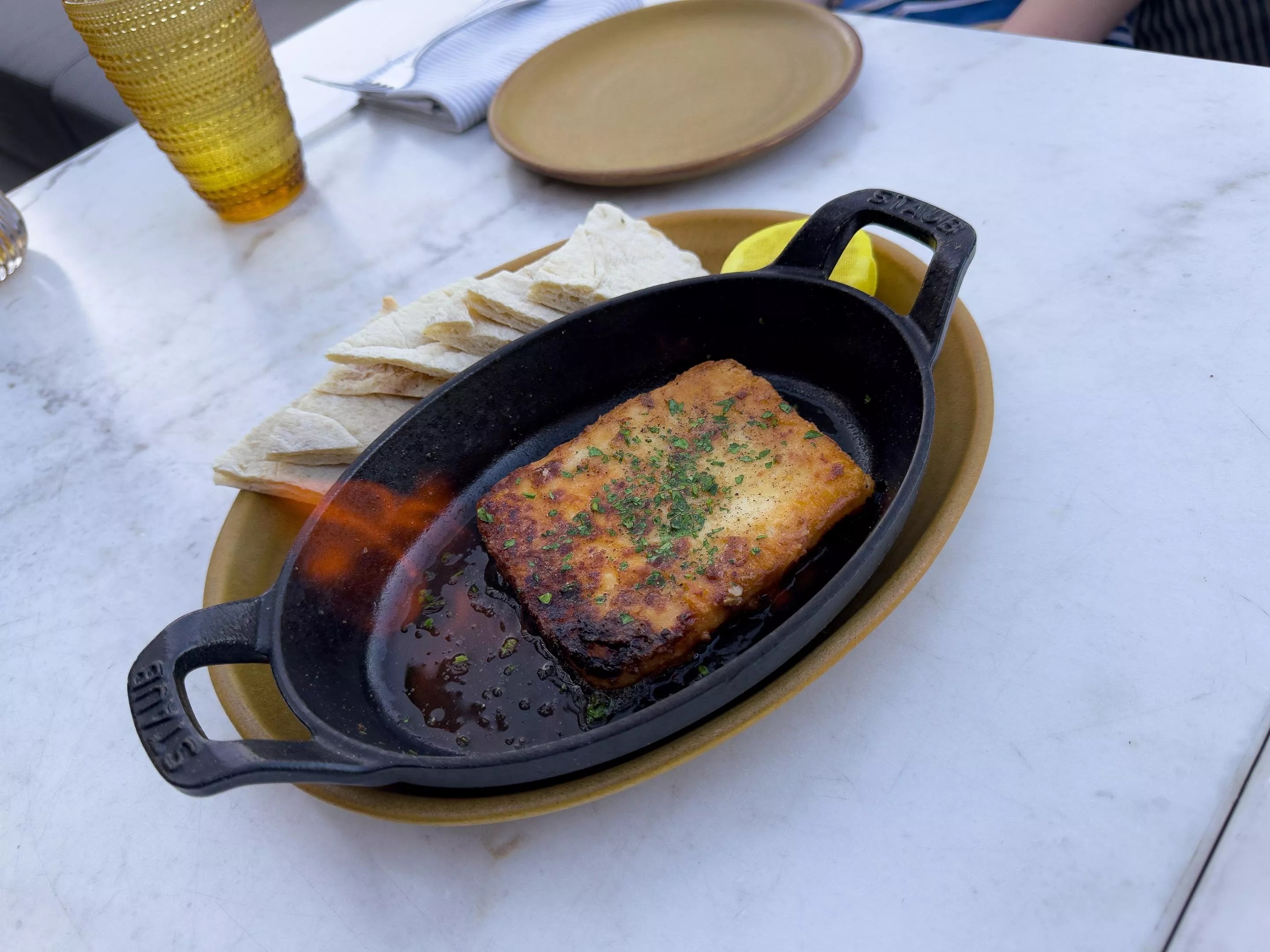 Thea’s saganaki is a flop, failing to capture the fun and flavor of the original dish.
