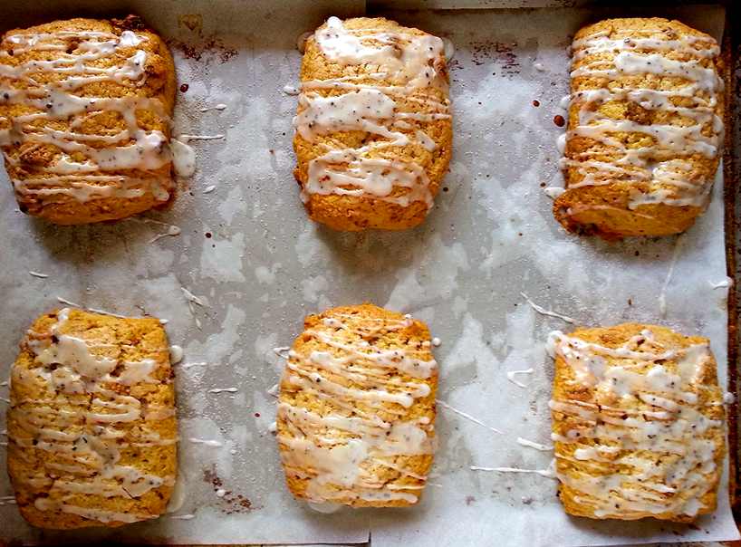 1. Whisk all icing ingredients together in a medium-sized bowl until smooth. Drizzle over the cooled scones with a spoon and let set for 10 minutes before serving.