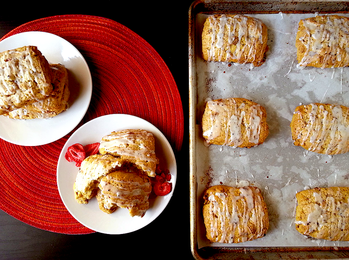 Strawberry and Cornmeal Scones with Black Pepper Icing