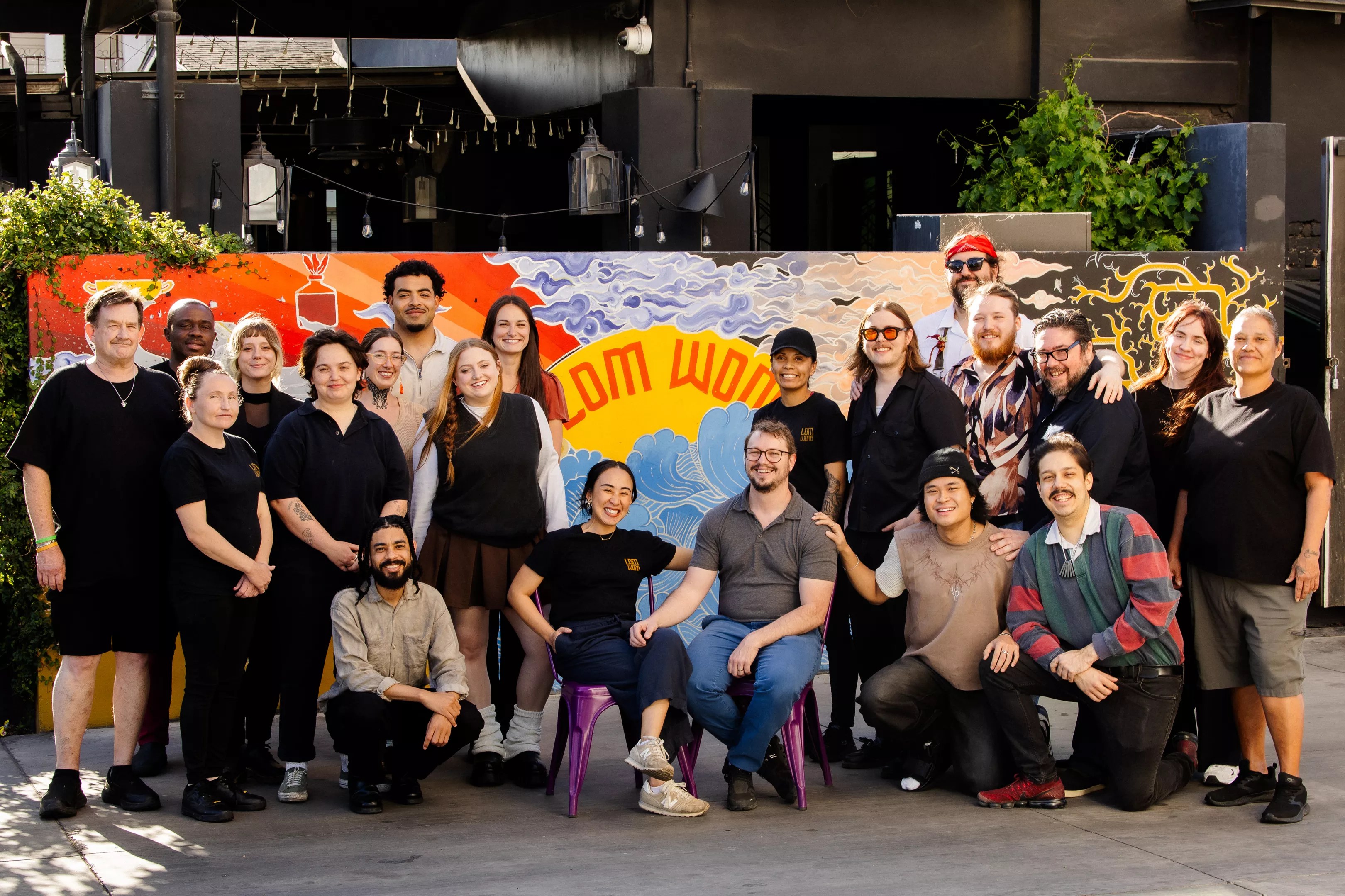Lom Wong owners Yotaka “Sunny” Martin and Alex Martin, center, with their restaurant team.