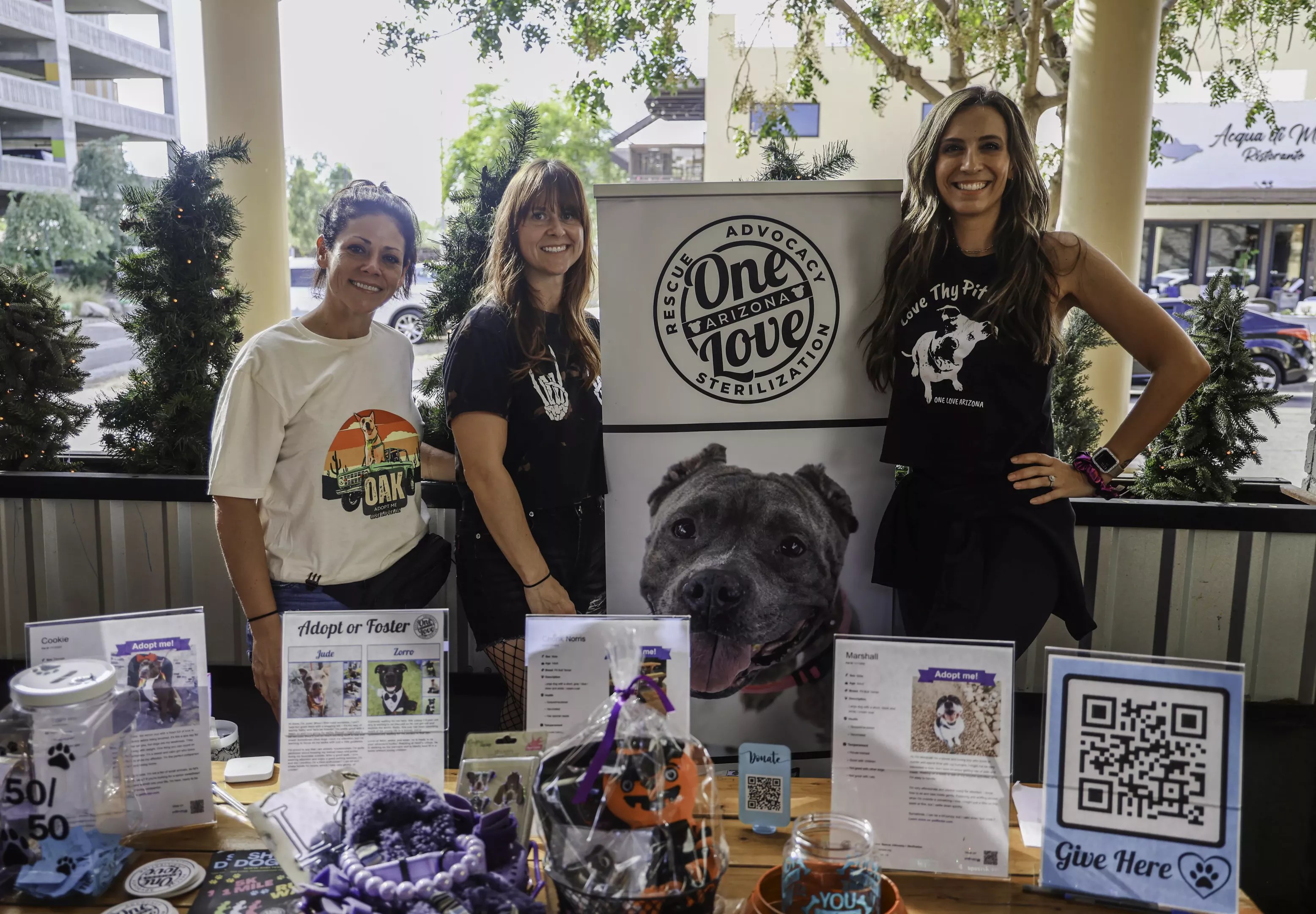 Valerie Johnson, Kelsey Sherwood and Lindsey Blazevich (left to right) from the One Love Pit Bull Foundation shared information about adoption and dog-friendly services with Chandler community members.