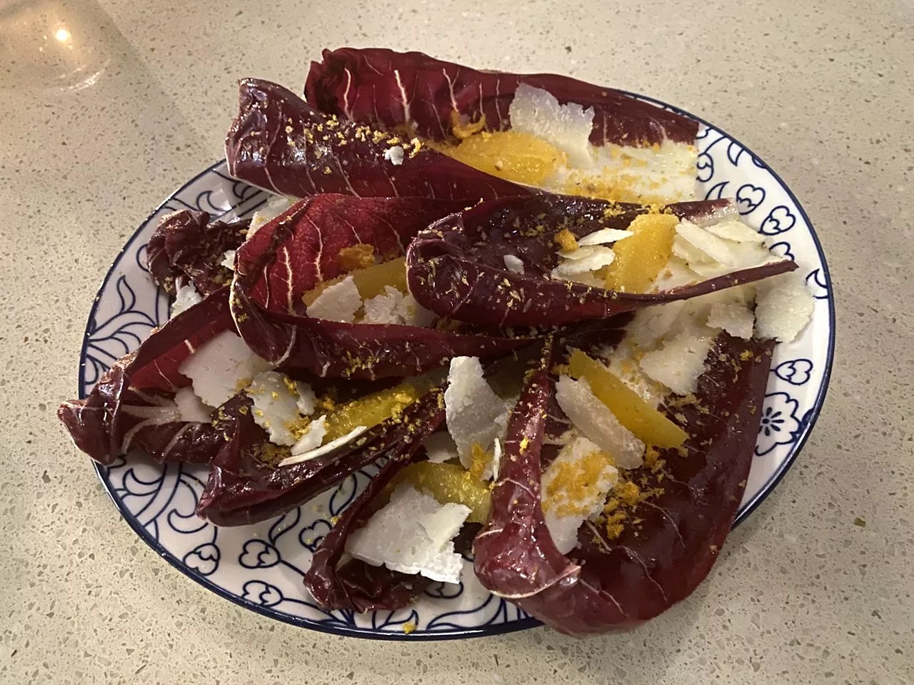 Raddichio served with pecorino, oranges, and bread crumbs bursts with balance.