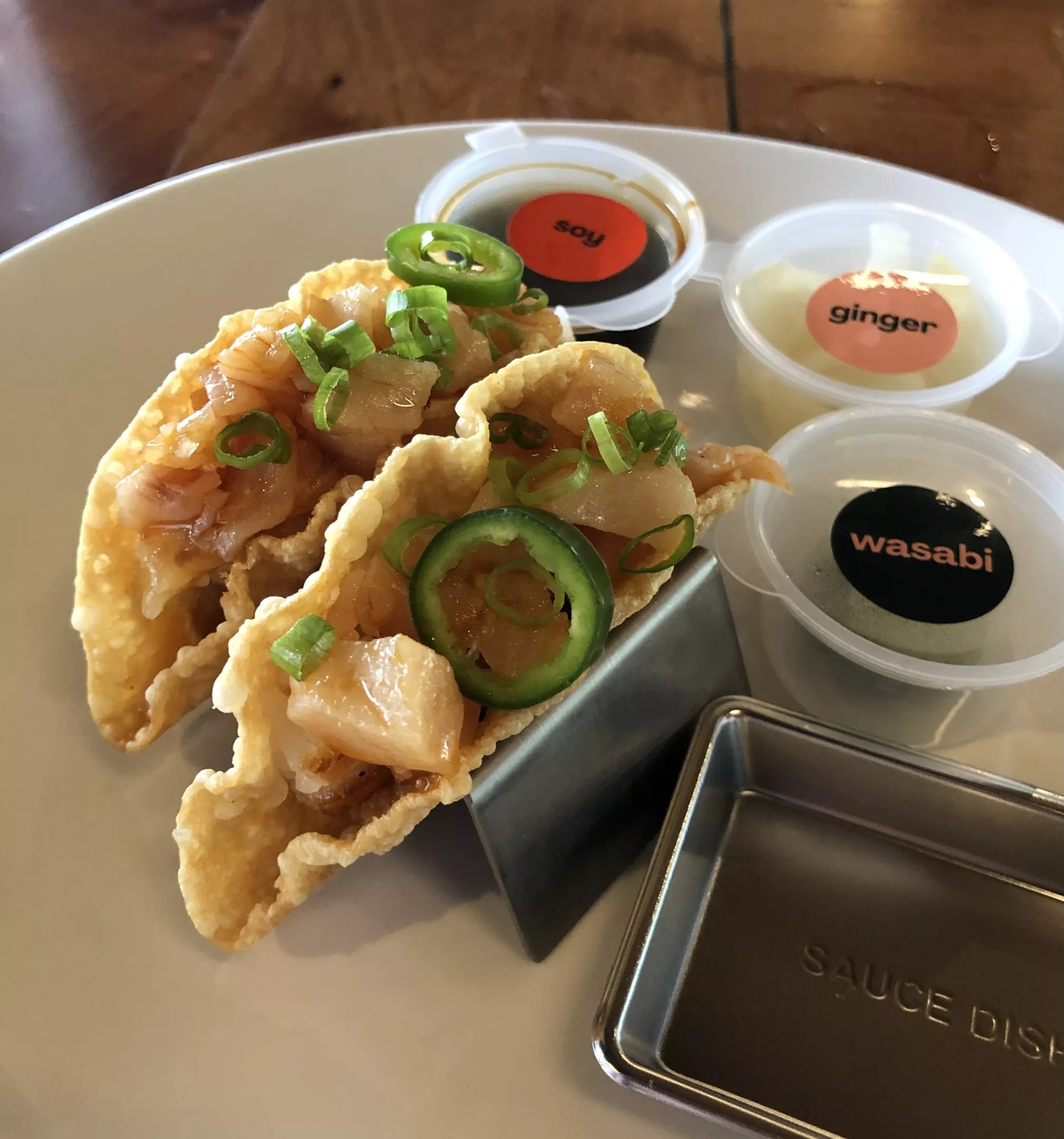850 S. Ash Ave. This yellowtail taco in a crispy gyoza shell is one of the items served at The Graduate Hotel Tempe Food Hall, which offers a variety of cuisines spanning Mediterranean, American and Asian. Georgann Yara