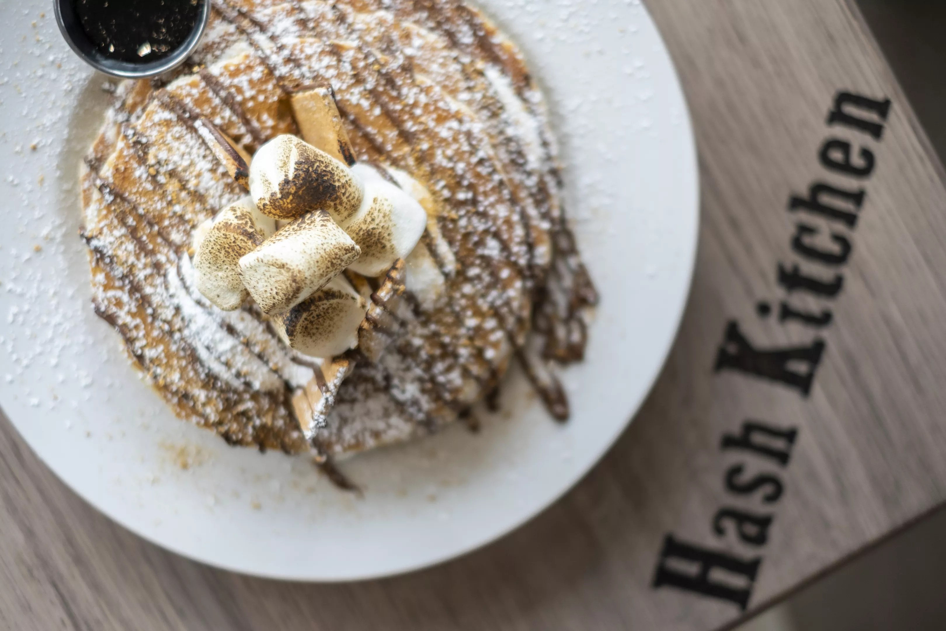 This imaginative brunch spot is of course all over something like National S’mores Day. At one of four locations of Hash Kitchen, try the S’mores Pancakes – a small tower of chocolate chip pancakes topped with marshmallow fluff, graham cracker dust, a campfire-style marshmallow, and a drizzling of Nutella. An order of these babies is $12.