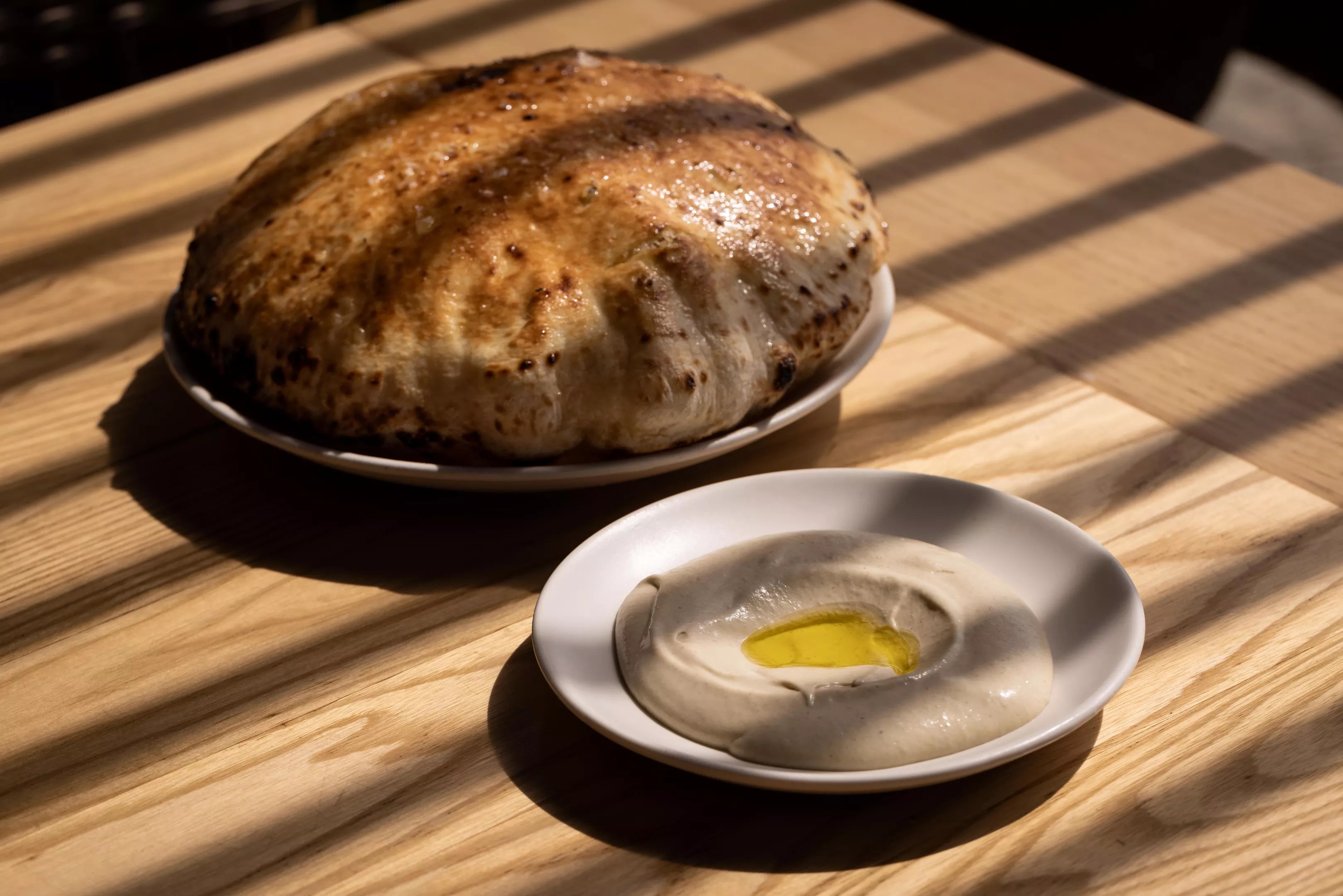 The restaurant’s whipped eggplant is their take on baba ganoush. The dip is served with puccia, a shareable, puffed bread from Italy’s Puglia region.