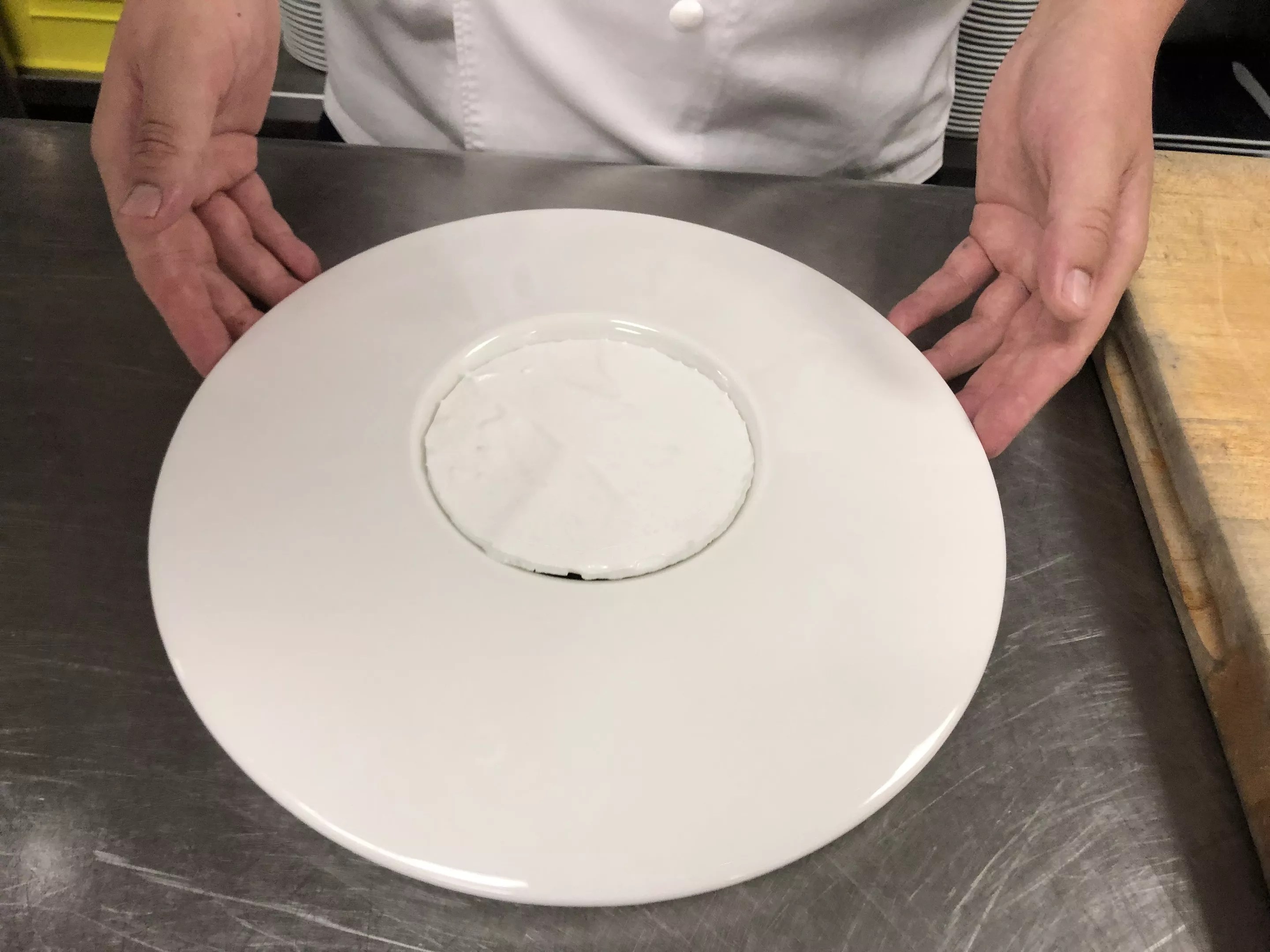 Precisely cut meringue fits the plate hollow.